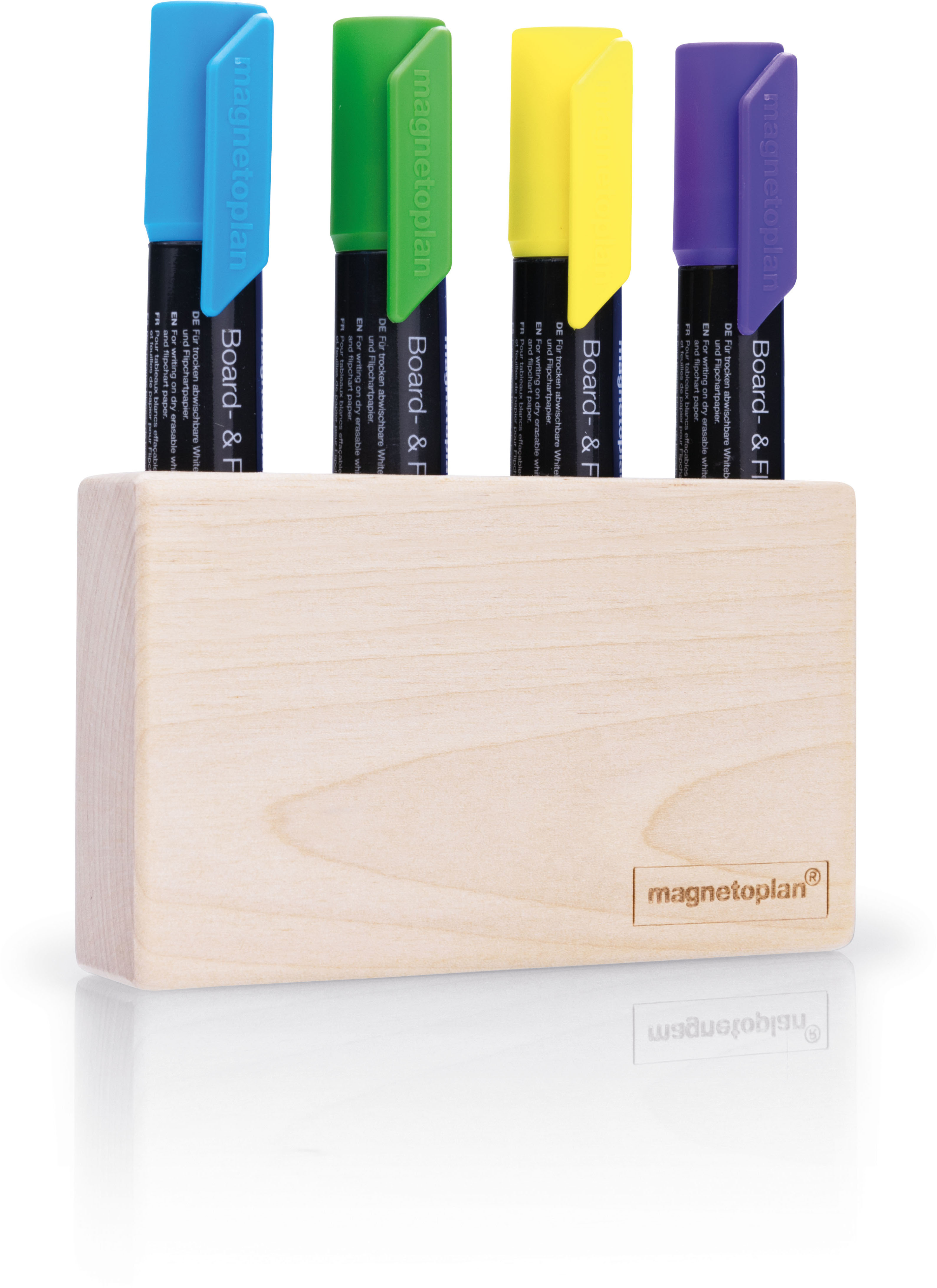 Der Marker- und Stiftehalter für Ihr Büro, Homeoffice und Zuhause. Sorgfältig von Hand aus massivem, FSC®-zertifiziertem Birkenholz gefertigt. Die Aussparungen bieten Platz für bis zu 4 Board- und Flipchartmarker PRO+ oder handelsübliche Marker und Stifte mit einem Durchmesser von bis zu 20 mm. Dank der einzigartigen Holzmaserung und der naturbelassenen Färbung wird jeder Marker-Köcher zu einem persönlichen Unika. Die Möglichkeit, den Köcher magnetisch an Whiteboards, magnetoplan Glasboards und anderen, eisenhaltigen Oberflächen zu befestigen, macht ihn besonders praktisch und flexibel. Dies wird durch die eingelassenen, extra-starken Neodym-Magnete ermöglicht, die für eine sichere Haftung sorgen. Holen Sie sich dieses stilvolle Accessoire und organisieren Sie Ihre Marker und Stifte auf elegante Weise! Größe: 114 x 70 x 26 mm (B x H x T).