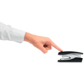 Kompaktes und zuverlässiges Heftgerät für den täglichen Gebrauch. Egal, wo Sie oben auf das Heftgerät drücken, die patentierte Softpress-Technologie ermöglicht Ihnen, die einhändige Bedienung und sorgt für müheloses Heften in der Hand oder auf dem Schreib