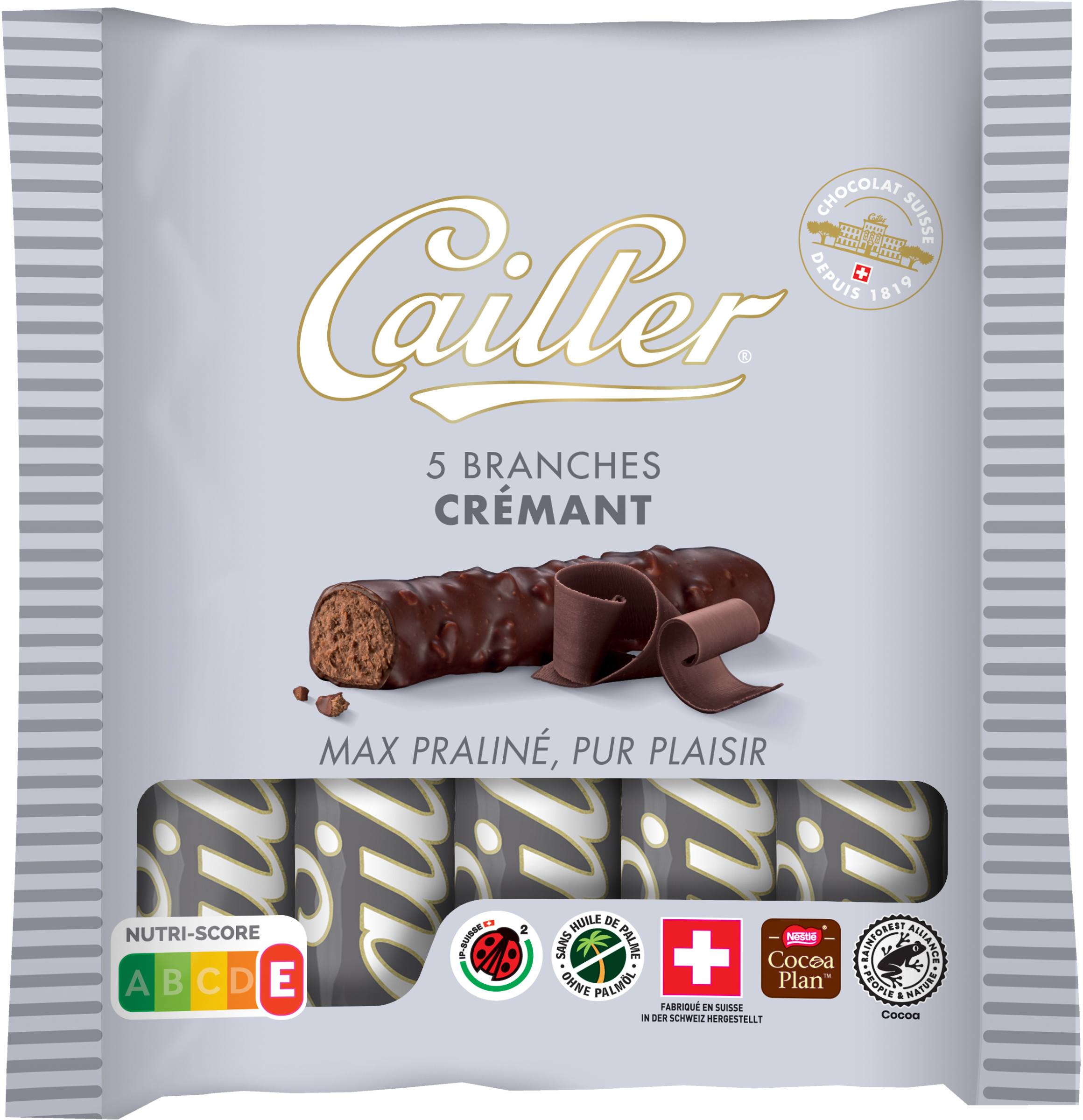 Eine CAILLER Branche Crémant erkennst du an der geheimen, zartschmelzenden PRALINÉ-Füllung, die sich erst mit einem Bissen durch die Tarnung von knackiger dunkler Haselnuss-Schokolade offenbart. Sie schenkt dir einen kleinen puren GLÜCKSMOMENT in deinem Alltag.