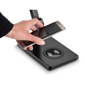 LED-Lampe mit kabelloser Ladestation, sehr robust (Metallstruktur) und extrem leistungsstark (7,2 W), ausgestattet mit einem taktilen Dimmer (max. 230 lm), einem taktilen Farbdimmer (von 3000k bis 5500k) und mit einer Lebensdauer von 50 000h. Dank dieser Lampe können Sie auch 2 Smartphones gleichzeitig über einen USB-Anschluss aufladen (5V2A ultraschnelles Aufladen) sowie ein kabelloses Telefonladegerät (kompatibel mit allen Smartphones und Geräten mit dieser Technologie).