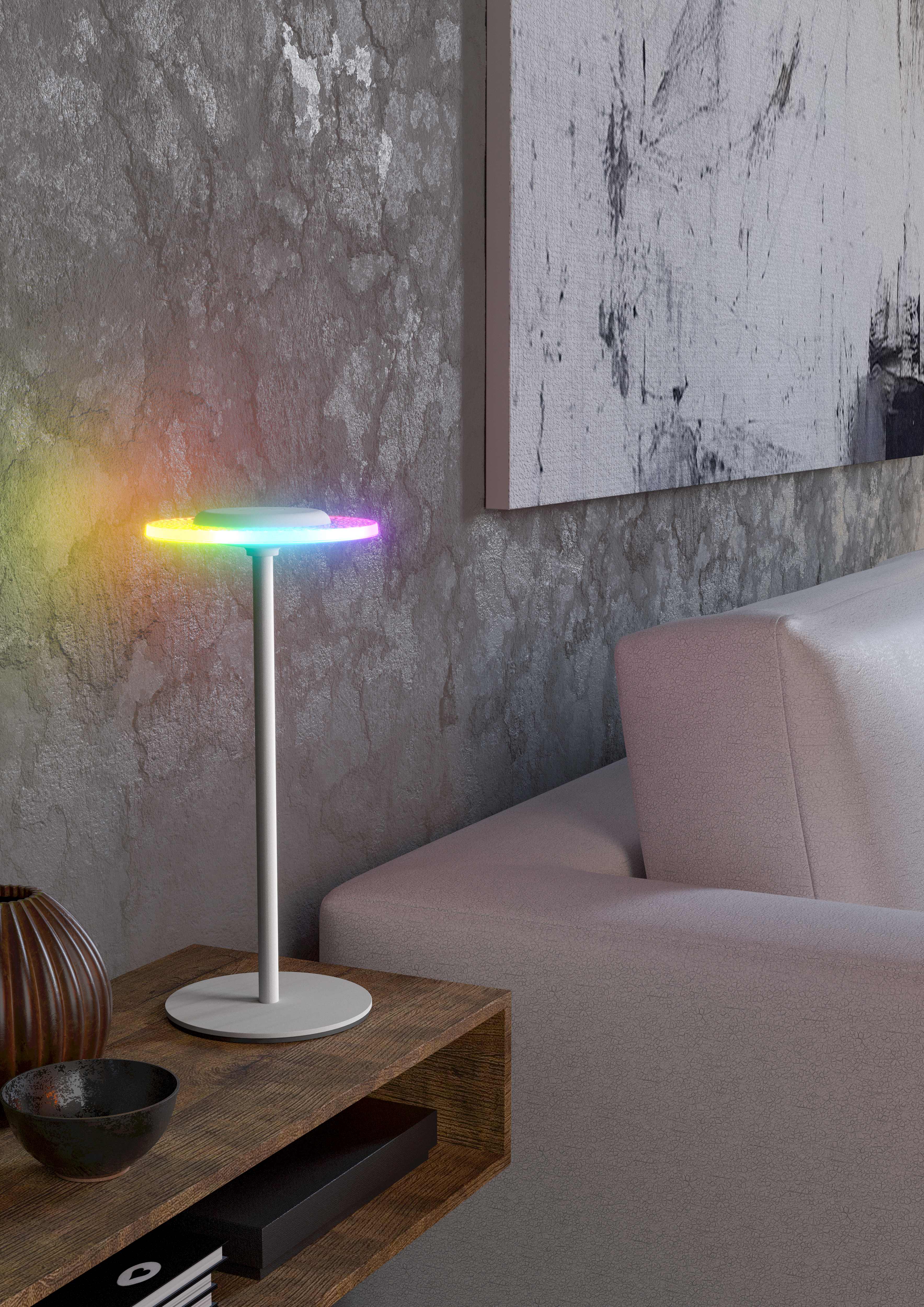 Die „TREPELLA“ ist eine moderne Akkutischleuchte mit RGBW-Funktion, die sich ganz einfach per Touch bedienen lässt. Sie bietet zwei Farbmodi mit sanften Farbübergängen sowie eine 3000K-Einstellung für warmweisses Licht. Dank ihres kabellosen Designs ist sie flexibel einsetzbar und kann bequem über ein USB-C-Kabel wieder aufgeladen werden. Ihr elegantes weisses Gehäuse macht sie zu einem stilvollen Lichtakzent für jede Umgebung.