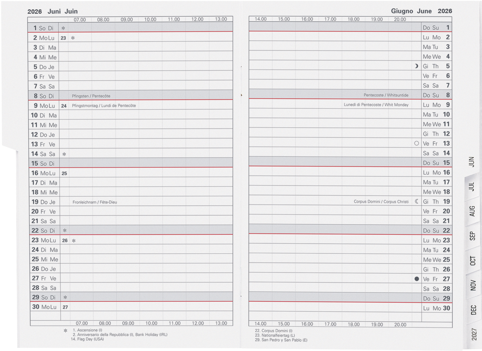 Der Biella Planer Istanbul eignet sich für den Anwender mit grosszügigerem Platzbedarf und enthält ein Kalendarium 1 Monat auf zwei Seiten, wie üblich enthält der Planer zusätzlich noch ein Adressregister und Notizpapier.