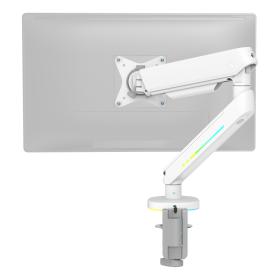 RGB-Gaming-Monitorarm für das Umgebungslicht hinter Ihrem Monitor beim Spielen. Das integrierte Kabelmanagementsystem sorgt für eine saubere Installation, während Ihr Monitor für den perfekten Winkel in Position gehalten wird. Das abnehmbare VESA-Plattendesign macht die Installation Ihres Monitors auf dem Arm einfach. Der Arm passt für Monitore bis zu 32" mit einem maximalen Gewicht von bis zu 9 kg und ist für gebogene Monitore ausgelegt. Die RGB-Beleuchtung wird über die mitgelieferte Fernbedienung gesteuert und ermöglicht es Ihnen, das perfekte Umgebungslicht für Ihre Bedürfnisse einzustellen.