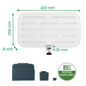 • Im Lieferumfang sind drei Schreibtisch-Ablage-Accessoires enthalten, die alle zu 85 % aus recyceltem Kunststoff bestehen: 1 x Notizblockhalter, 1 x Stifthalter und 1 x Aufhängehaken für ein Headset