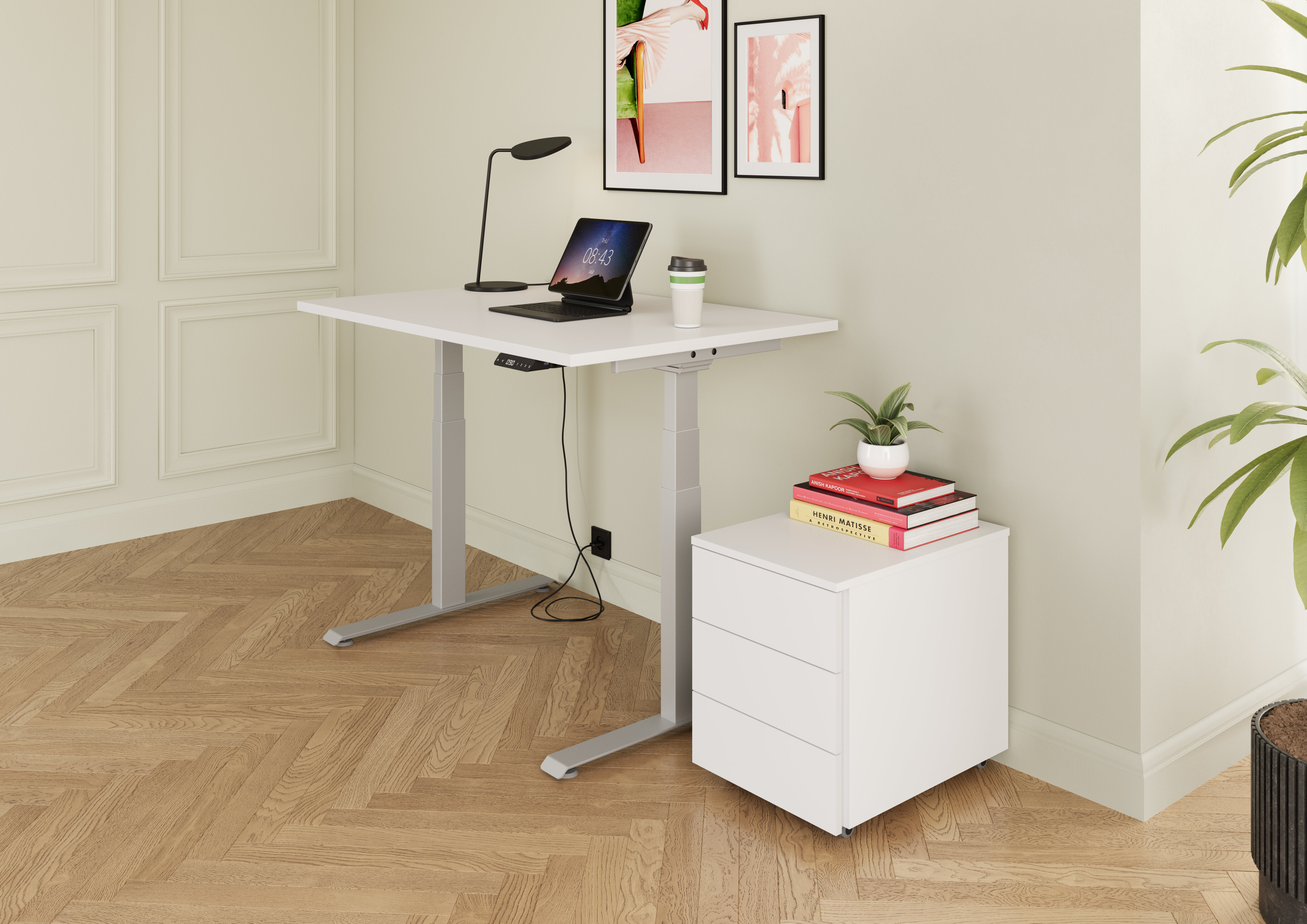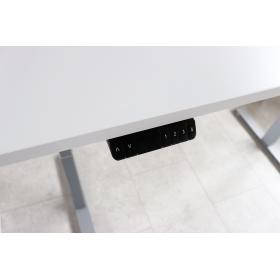 Der elektrisch höhenverstellbare Schreibtisch Tarys ERGO-0 wird aus hochwertigen Materialien gefertigt und ist stabil gebaut. Der Bürotisch 160 x 80 cm ist elektrisch, beliebig höhenverstellbar und kann auf 3 Höhen programmiert werden. Er verfügt über eine sanfte Anlauf- und Stopp-Funktion mit Kollisionsschutz. Die Tischplatte ist mit einer 25 mm dicken Melaminharzbeschichtung versehen, welche den Tisch widerstandsfähig gegen Kratzer oder sonstige Beschädigungen macht. Das pulverbeschichtete T-Bein-Untergestell ist von hoher chemischer und mechanischer Beständigkeit. Das Gestell ist mit 2 Motoren ausgestattet und lässt sich in der Breite von 106 - 176 cm verstellen, so können je nach Bedarf auch andere Tischplattengrössen montiert werden. Der elektrisch höhenverstellbare Tisch ist in schlichtem Design gehalten und lässt sich ideal auch mit anderen Büromöbeln kombinieren. Der Schreibtisch ist FSC®-zertifiziert und wird vom Hersteller mit einer Garantie von 2 Jahren ausgeliefert.
