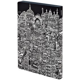 Das Nuuna Notizbuch Graphic L London A5 aus recyceltem Leder entführt uns in die Weltstadt London. Das Städtemotiv läuft komplett um das Buch herum, auch über die Buchkanten hinweg. Mit seinen dicken (120 g/m2), nummerierten Seiten, die punktkariert (Dot Grid) sind, ist es das optimale Buch für jede Art von Notizen, Zeichnungen und das Speichern von Gedanken und Eindrücken. Sei es als Tagebuch, Skizzenbuch oder als Merkbuch. Durch die Fadenbindung liegt das Notizbuch zudem flach auf und ist immer bereit für Ihre Notizen. Entfliehen Sie dem Alltag und planen Sie Ihren nächsten Städtetrip.