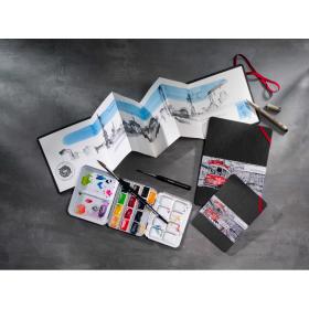 Das ZigZagBook von Hahnemühle ist ein kreatives Aquarellbuch mit einzigartiger Zickzack-Faltung, das sich ideal für Skizzen, Studien und Reiseillustrationen eignet. Mit 300 g/m² ist das Papier stabil genug für Aquarell-, Gouache- und Mixed Media Techniken. Die fein strukturierte, matte Oberfläche garantiert eine gleichmässige Farbaufnahme, während das innovative Faltformat vielseitige Präsentationsmöglichkeiten bietet.