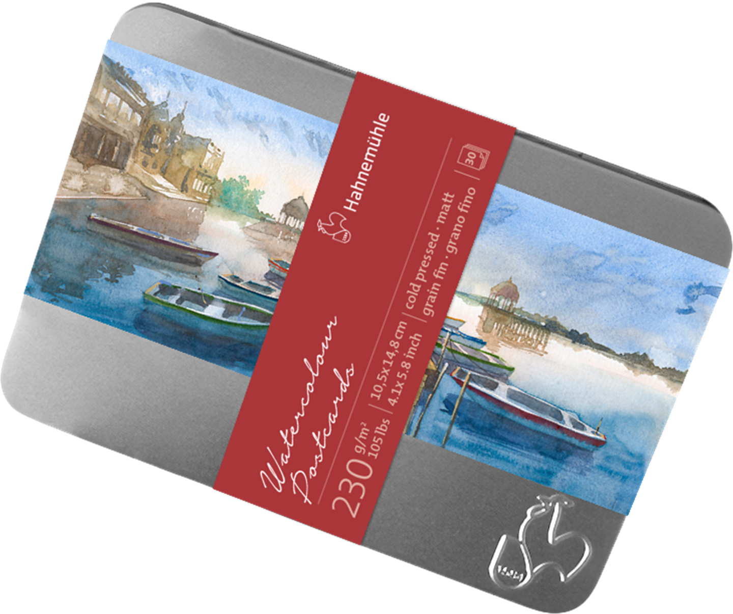 Die Aquarellpostkarten von Hahnemühle werden aus hochwertigem Papier mit 230 g/m² hergestellt und stehen für eine Papierproduktion mit besonderer Qualität. Die matte, fein strukturierte Oberfläche eignet sich ideal für Aquarell-, Gouache- und Mixed Media Techniken. Die praktische Metallbox schützt die Postkarten und macht sie besonders transportfreundlich, perfekt für Workshops, Reisen oder kreative Projekte.