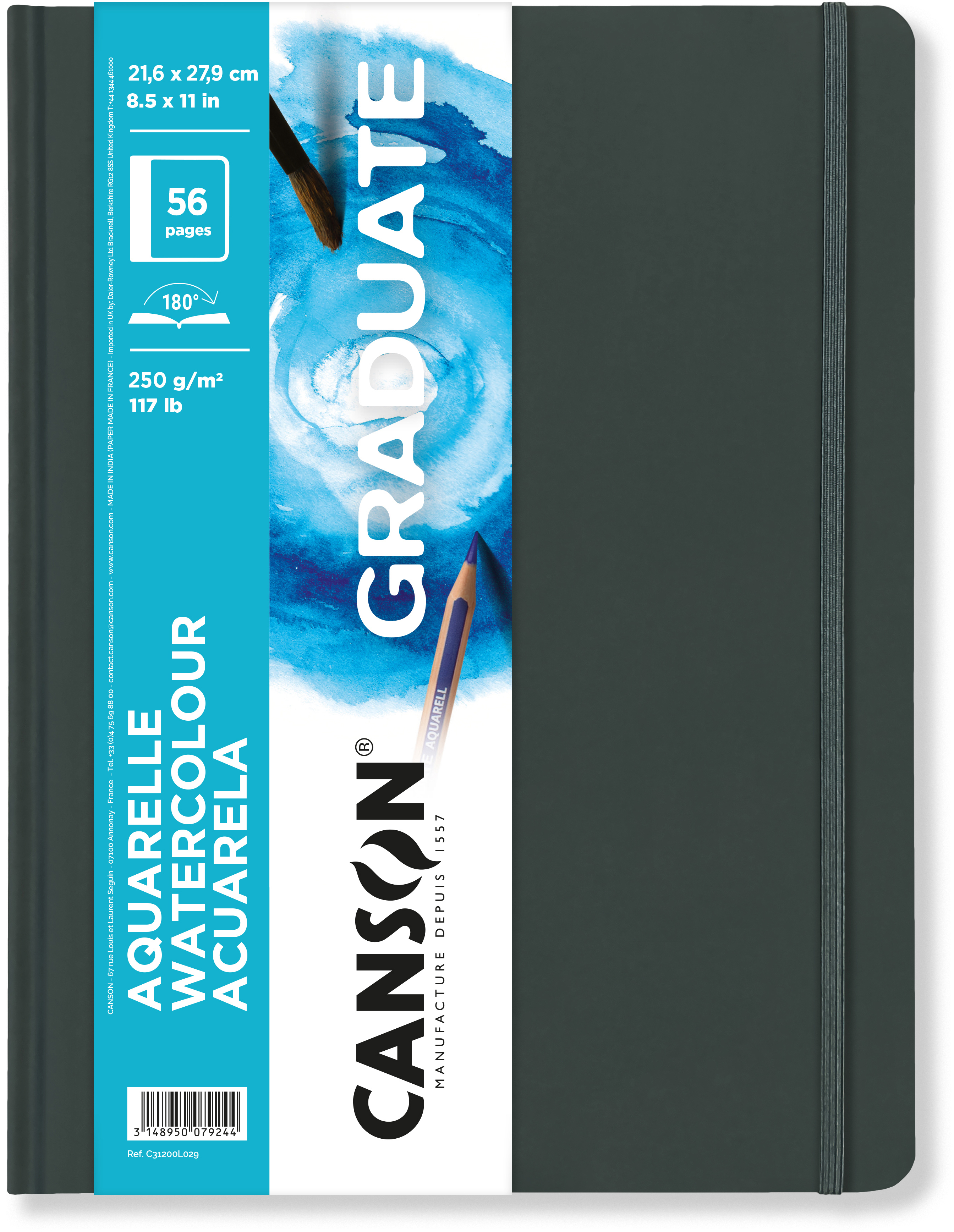 Das Graduate Aquarelle Buch bietet ein doppelseitiges weisses Papier mit einer feinen und leichten Körnung, das perfekt ist, um die Aquarellmalerei zu erlernen oder zu perfektionieren. Die Bücher lassen sich leicht mitnehmen und ermöglicht es, deine Kunst bei jeder Gelegenheit auszuüben. Das Buch hat einen schönen Einband aus recycelten Fasern mit abgerundeten Kanten und einem Elastikbandverschluss. Im Inneren des Buches finden Sie ein Band als Lesezeichen sowie eine Aufbewahrungstasche für Ihre Skizzen, Fotos oder Entwürfe.