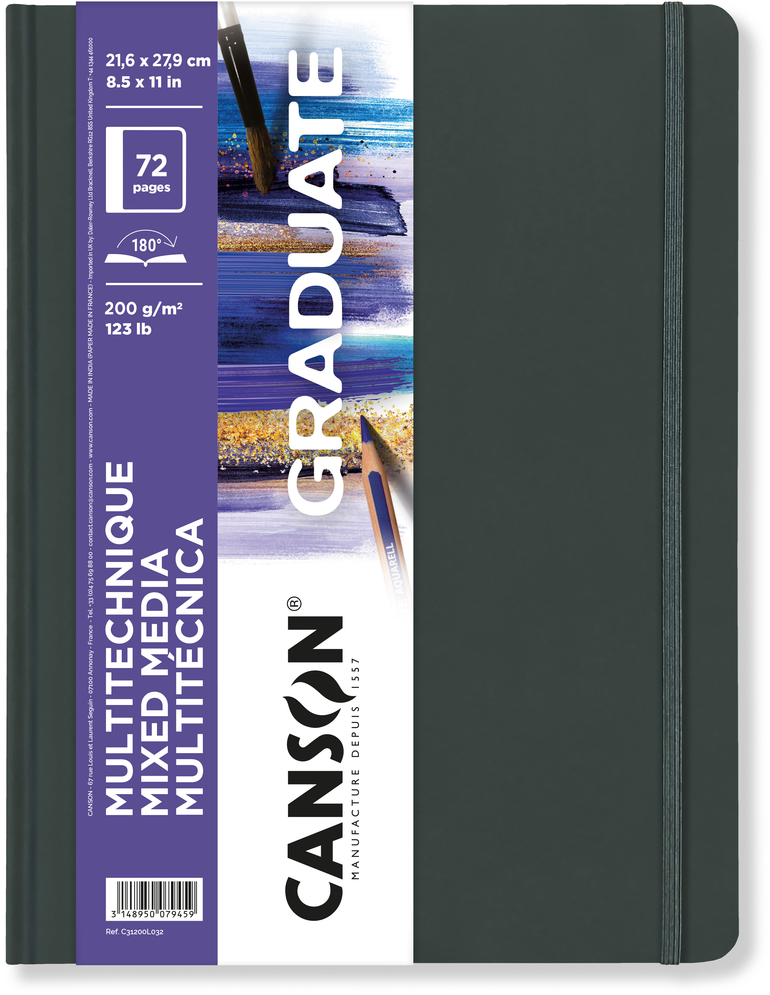 Das Graduate Mixed Media Notizbuch mit weißem 200 g/m² Papier ist das perfekte Mehrzweckmedium, um verschiedene Techniken zu kombinieren. Ob Bleistiftzeichnung, Aquarell oder Filzstifte. Das Buch besteht aus einem Einband aus Recyclingfasern mit abgerundeten Kanten und lässt sich mit einem Elastikband mühelos öffnen und schliessen. Im Inneren befindet sich eine Aufbewahrungstasche, in der du alle Ihre Skizzen und Entwürfe aufbewahren kannst, während ein Lesezeichenband dir hilft, deine neuesten Werke schnell wiederzufinden.