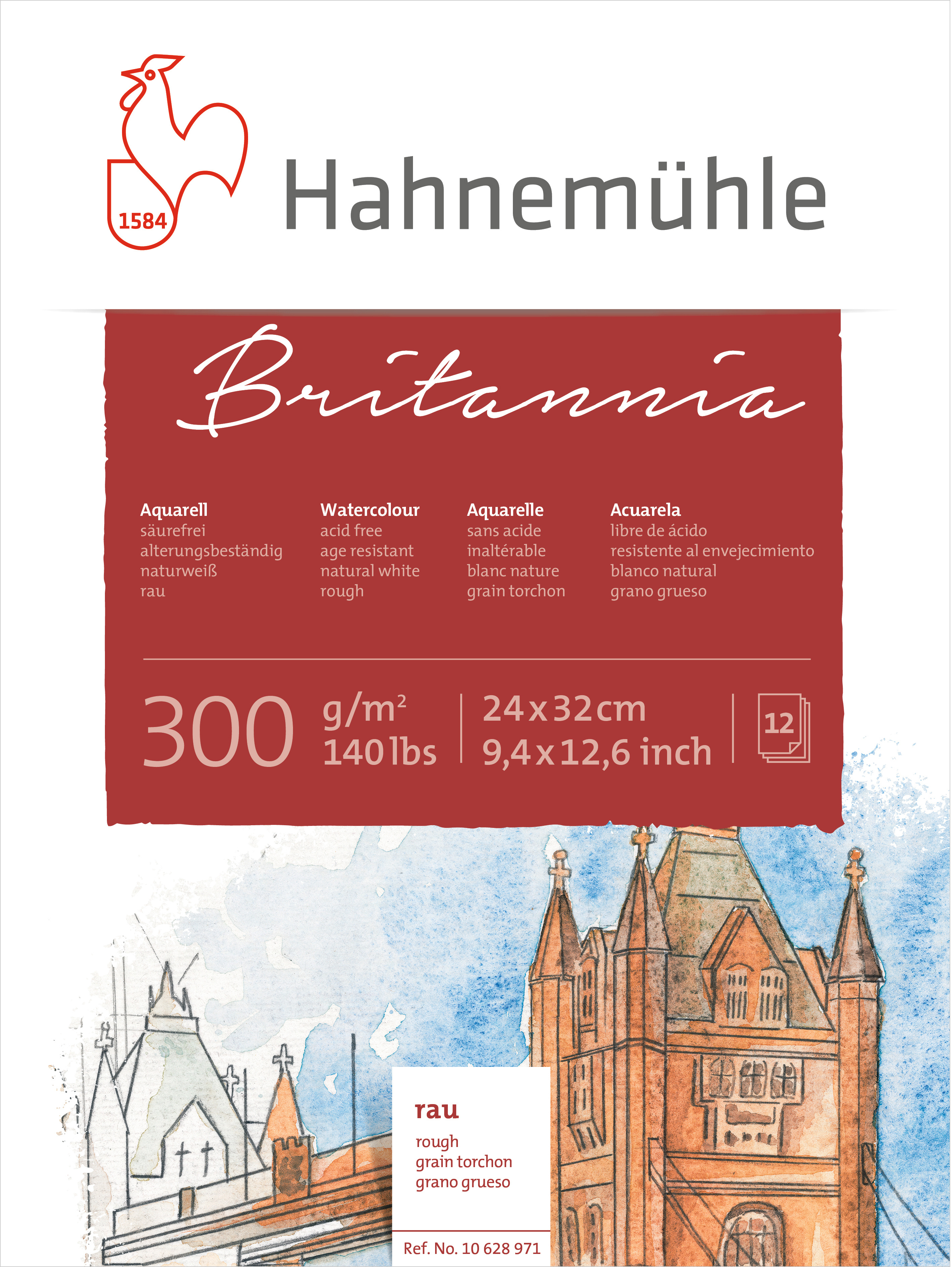 HAHNEMÜHLE Aquarellbl. Britannia 24x32cm 10628971 weiss rau, 300g 12 Blatt 735600-ITC