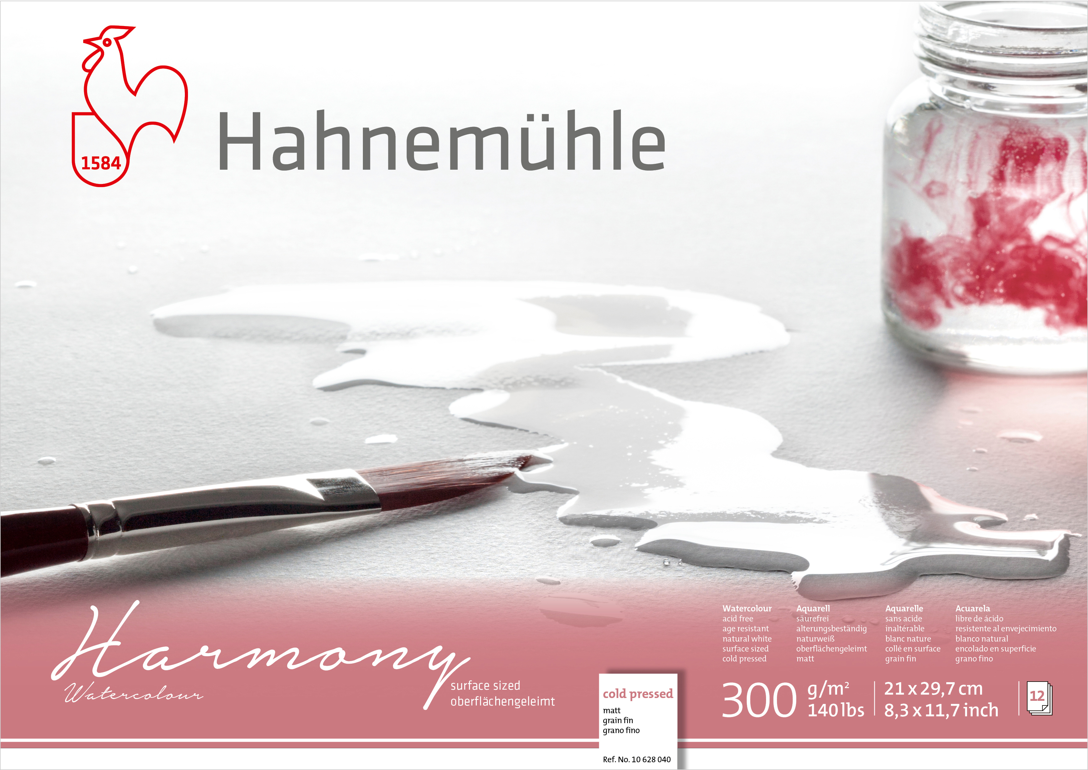 Die Harmony Aquarellblöcke von Hahnemühle vereinen höchste Papierqualität mit grosser Vielseitigkeit für professionelle Aquarell- und Gouachearbeiten. Jedes Blatt ist vierseitig geleimt, wodurch das Papier flach und formstabil bleibt, selbst bei intensiver Nassmaltechnik. Die Serie ist in drei Oberflächenvarianten erhältlich: Die matte Oberfläche eignet sich hervorragend für sanfte Farbverläufe und klassische Aquarelltechniken, während die satinierte Variante glatte Farbübergänge und feine Detailarbeit ermöglicht, ideal für präzise Illustrationen. Die raue Oberfläche verleiht den Arbeiten Struktur und lebendige Effekte, besonders geeignet für expressive Aquarell- und Gouacheprojekte.