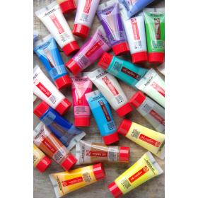 • Diese vielseitige Farbe kann auf fast allen Untergründen verwendet werden, sofern diese einigermaßen saugfähig und frei von Fett und Staub sind: von Leinwand und Papier bis hin zu Gips, Pappe, Holz, Stein und Zement. Da die Tuben transparent sind, können Sie beim Malen leicht die gewünschte Farbe auswählen.