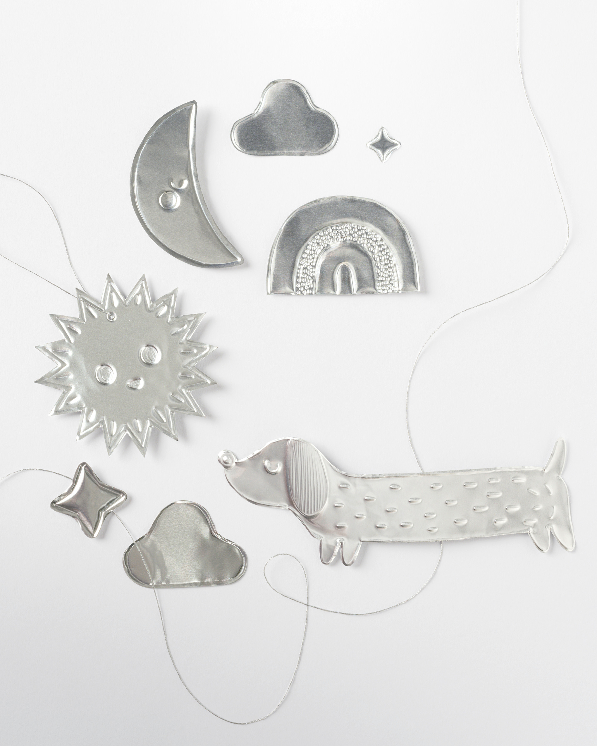 Ob mit Prickelnadel oder Falzbein, die dicke Prägefolie lässt sich biegen, wie es dir gefällt. Ein Klassiker, der als Mobile oder Fensterbild Glanz ins Zuhause bringt.