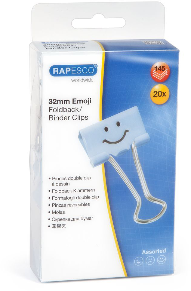 Bringen Sie ein wenig Spass in Ihre Ordnung mit unseren hellblauen Emoji Foldback-Klammern. Ideal für die Befestigung von Papier und Pappe. Diese Clips halten Dokumente sicher und dicht zusammen und können immer wieder entfernt und wiederverwendet werden ohne das Papier zu beschädigen.