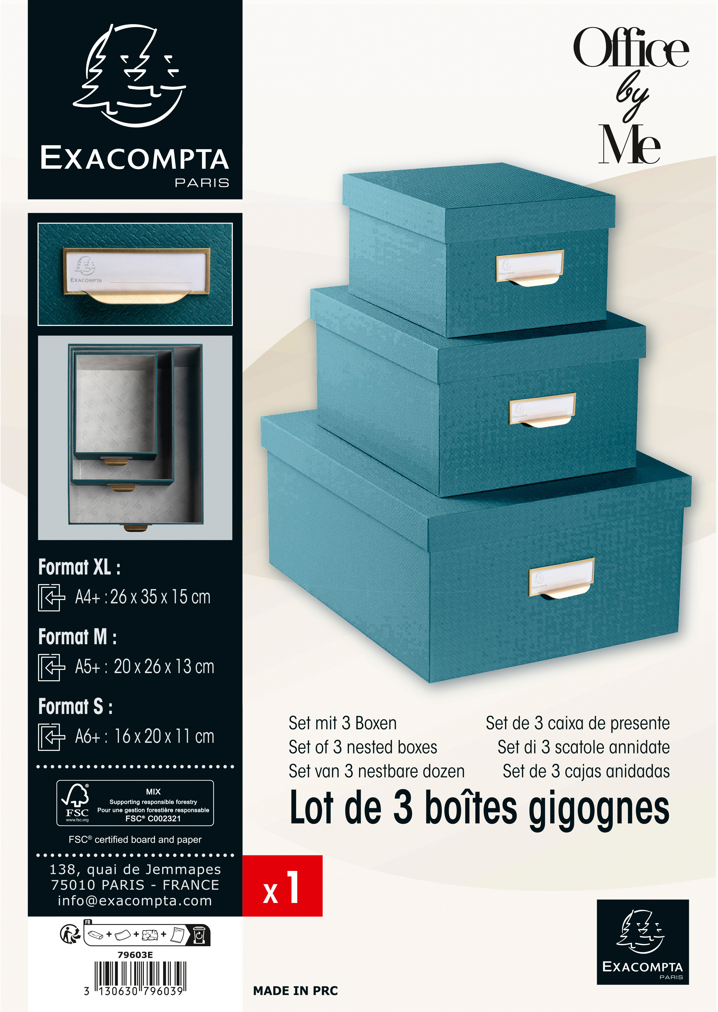 EXACOMPTA Ablagebox OfficeByMe 79603E blaugrün 3er-Set 730116-ITC