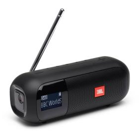 JBL Tuner 2 ist ein kompakter tragbarer Bluetooth-Lautsprecher mit kräftigem Sound und kristallklarem DAB-Digitalradio. Dank seinem kompakten Design und einem wiederaufladbaren Akku mit bis zu acht Stunden Wiedergabezeit können Lieblingssongs und Radiosender nun überall genossen werden. Wenn keine digitalen Sender empfangen werden können, kann man einfach auf UKW-Radio wechseln. Ausserdem verfügt er über ein übersichtliches, hintergrundbeleuchtetes LCD-Scroll-Display und fünf direkte Preset-Tasten für DAB/UKW, damit die Lieblingssender stets abrufbar sind. So wird er zum ultimativen musikalischen Begleiter für unterwegs.Mit Bluetooth-Lautsprecher • wiederaufladbarer Akku • Wiedergabezeit: bis zu 8 Stunden • Masse (B x L x H): 16.6 x 6.6 x 6.6 cm • Gewicht: 812 g