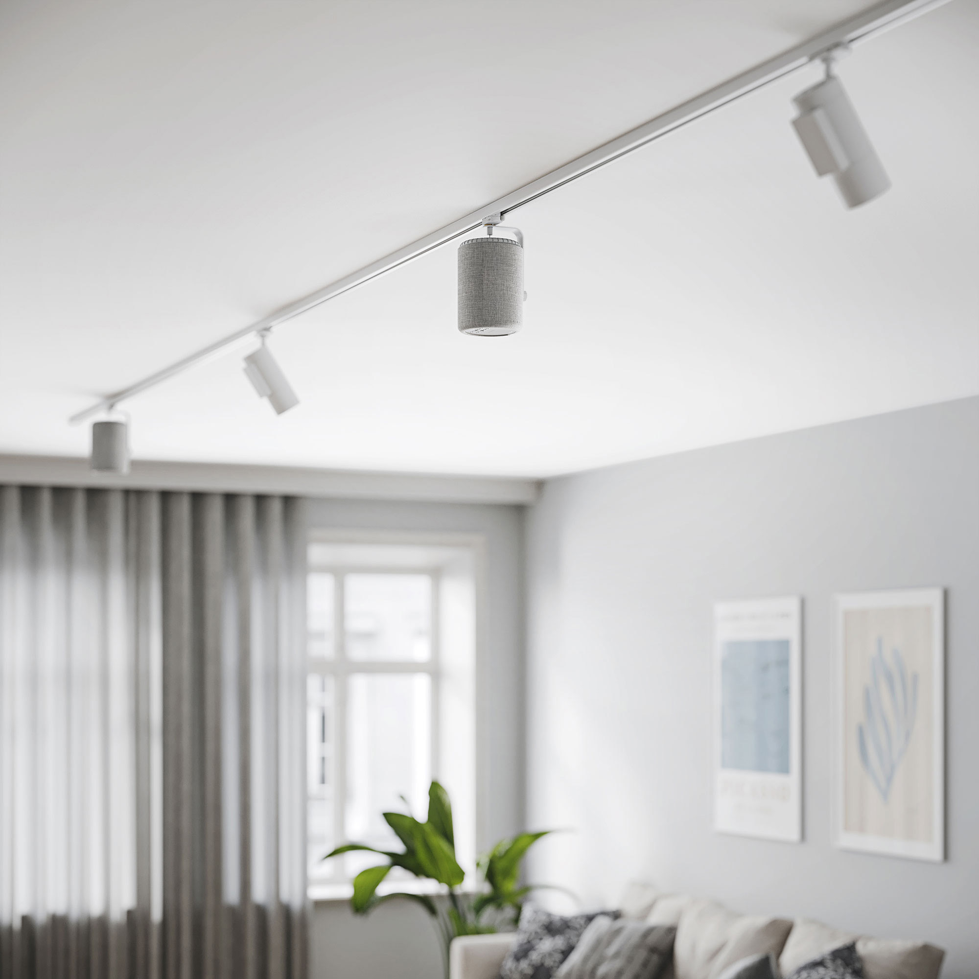 - Über 4 voreingestellte Tasten haben Sie einfachen Zugriff auf Ihre Lieblings-Playlists und Radiosender. Drücken Sie einfach die Taste, ohne die App öffnen zu müssen. Dieser Lautsprecher kann mit speziellen Wandhalterungen (separat erhältlich) an der Wand oder mit speziellen Halterungen (separat erhältlich) einfach an Deckenschienen befestigt werden.