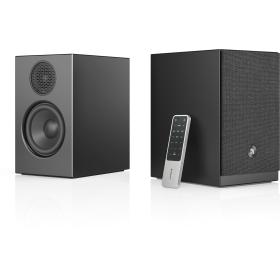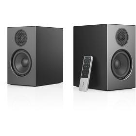• Das MDF-Gehäuse in stilvollem Weiß oder Schwarz oder, falls Sie es vorziehen, in exklusivem Walnussfurnier fügt sich harmonisch in Ihr Zuhause ein. Die Stofffronten sind magnetisch befestigt und können für einen moderneren Look, falls Sie dieses Design bevorzugen, leicht entfernt werden. Der A28 W ist für die Wandmontage vorbereitet (Halterungen separat erhältlich), findet aber auch problemlos Platz im Regal.