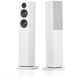 • Das MDF-Gehäuse in stilvollem Weiß oder Schwarz fügt sich harmonisch in Ihr Zuhause ein. Die Stofffronten sind magnetisch befestigt und können für einen moderneren Look, falls Sie diesen bevorzugen, einfach abgenommen werden. Dank seiner Größe bietet der A38 W ein noch kraftvolleres Klangerlebnis als sein Schwestermodell A28 W. Das größere Gehäuse mit seinen zwei Tieftönern sorgt für einen besonders kraftvollen, tiefen Bass. Dank seiner geringen Stellfläche passt er bequem auf den Boden neben den Fernseher.