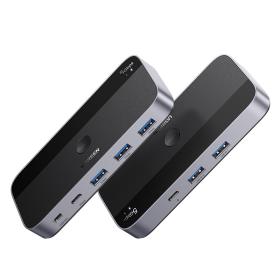 • Anschluss von USB-C- und USB-A-Geräten: Der USB-3.0-Umschalter bietet 1 USB-C-Anschluss und 3 USB-A-Anschlüsse für den Anschluss verschiedener USB-Geräte. USB-C-Anschlüsse können an einen USB-C-Hub oder andere USB-C-Geräte angeschlossen werden, wodurch mehr Anschlüsse für zwei Computer entstehen. (*Bei gleichzeitiger Verwendung mehrerer Geräte wird die Stromversorgung empfohlen, um Verbindungsabbrüche aufgrund unzureichender Stromversorgung zu vermeiden.*)
