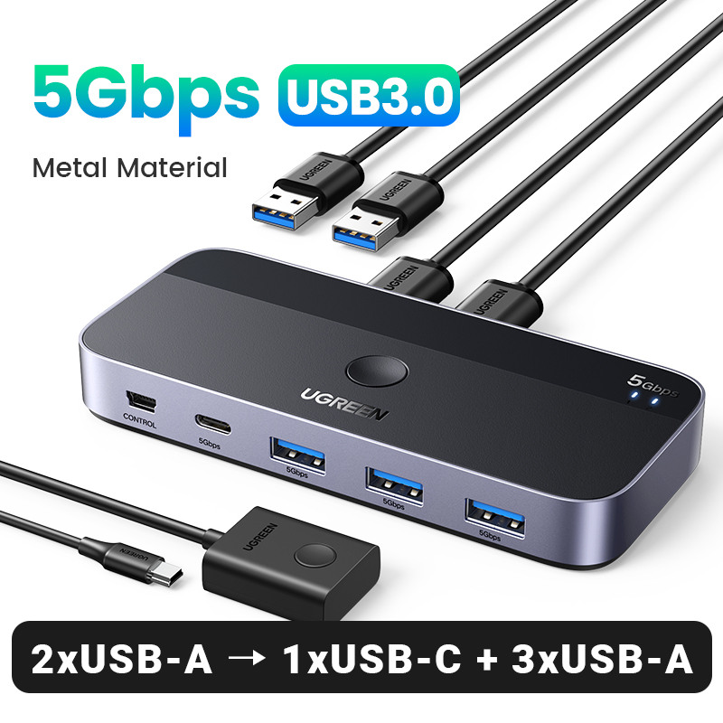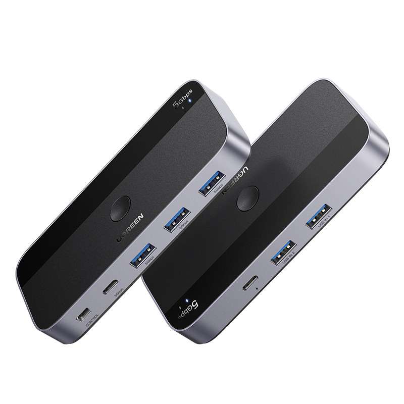 2 PCs teilen sich mehrere Geräte: Der UGREEN 2-In 4-Out USB-Umschalter unterstützt 2 Computer, die 4 USB-Geräte wie Tastaturen, Mäuse, Drucker, Kopfhörer und USB-Kameras gemeinsam nutzen. Wechseln Sie frei zwischen Ihrem Arbeits- und Ihrem Privatcomputer und steigern Sie Ihre Arbeitseffizienz. (*Kein KVM-Umschalter und unterstützt keine Monitor- oder Videoübertragung.*)