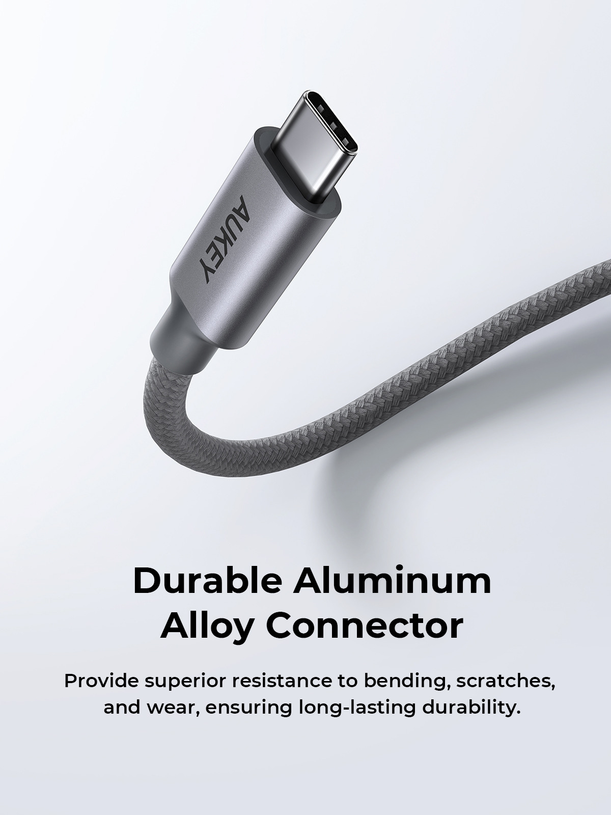 - Verbesserte Haltbarkeit: Das Kabel besteht aus nylonummanteltem Material, das die Biegefestigkeit erhöht und die Haltbarkeit mit einer längeren Lebensdauer verbessert. Gleichzeitig verbessert das schlanke und robuste Aluminiumgehäuse des Kabels nicht nur seine Ästhetik, sondern bietet auch eine hervorragende Haltbarkeit und Wärmeableitung.