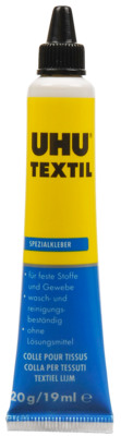 UHU textil Spezialklebstoff für Klebungen von Baumwolle, Baumwollmischgewebe, Jeans, Leinen, Filz- und Kokosfasern untereinander oder mit Holz und Leder. Besonders geeignet zum Säumen von Stoffen und Reparieren von Löchern und Rissen in Bekleidung, Dekorations- und Polsterstoffen. Ist ideal einsetzbar im Hobbybereich zum Reparieren von Liegestühlen, Zelten, Strandkörben etc. Der weisse UHU textil spezialkleber härtet transparent, ist sehr flexibel, waschmaschinenfest bis 90°C und kann sowohl gebügelt als auch chemisch gereinigt werden. Überbügeln nach dem Trocknen (ca. 30 Min.) erhöht die Reinigungs- und Waschbeständigkeit.