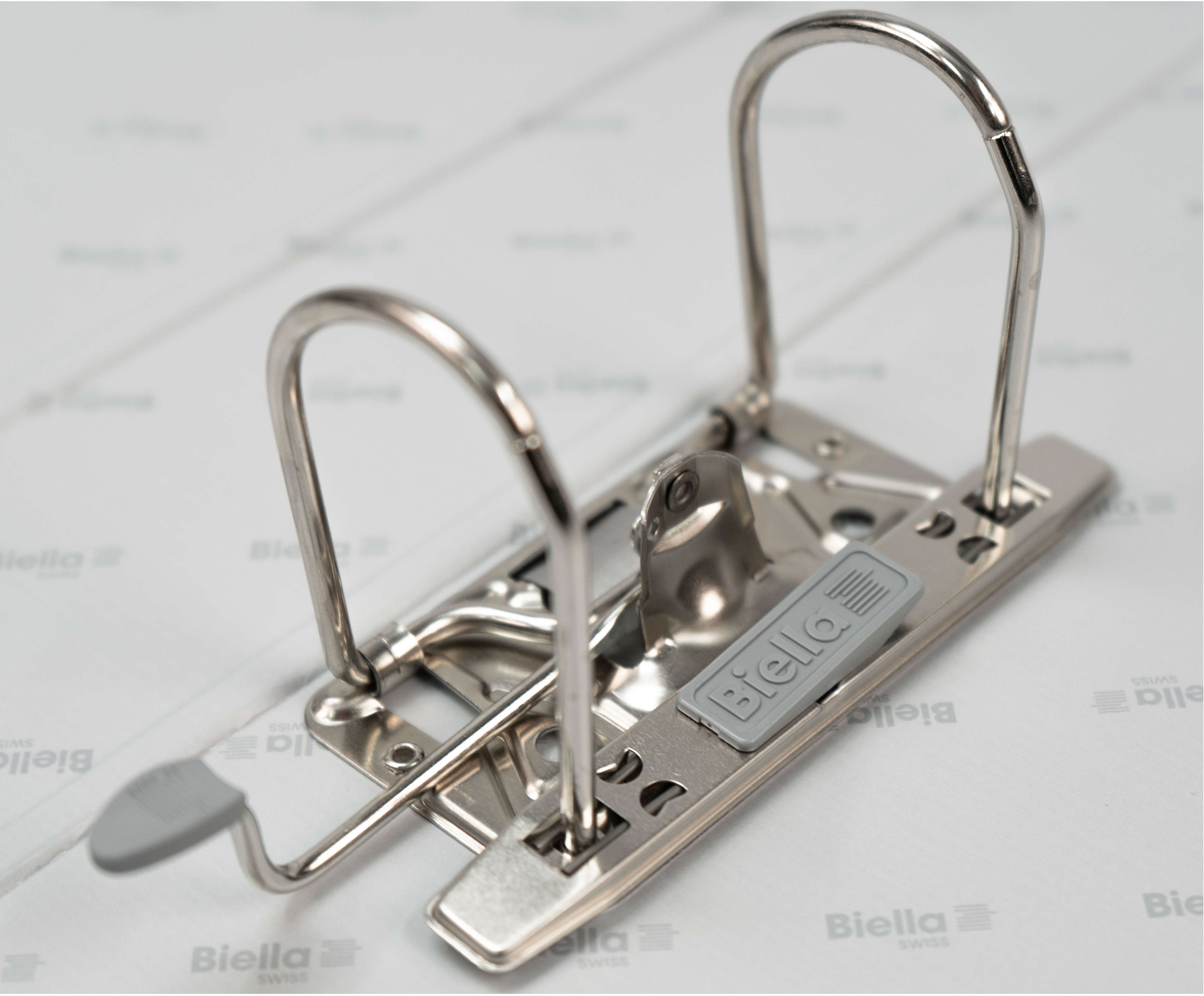 Die Biella Hebelmechanik "Strong" bietet mehr Stabilität als bei den herkömmlichen Ordner.