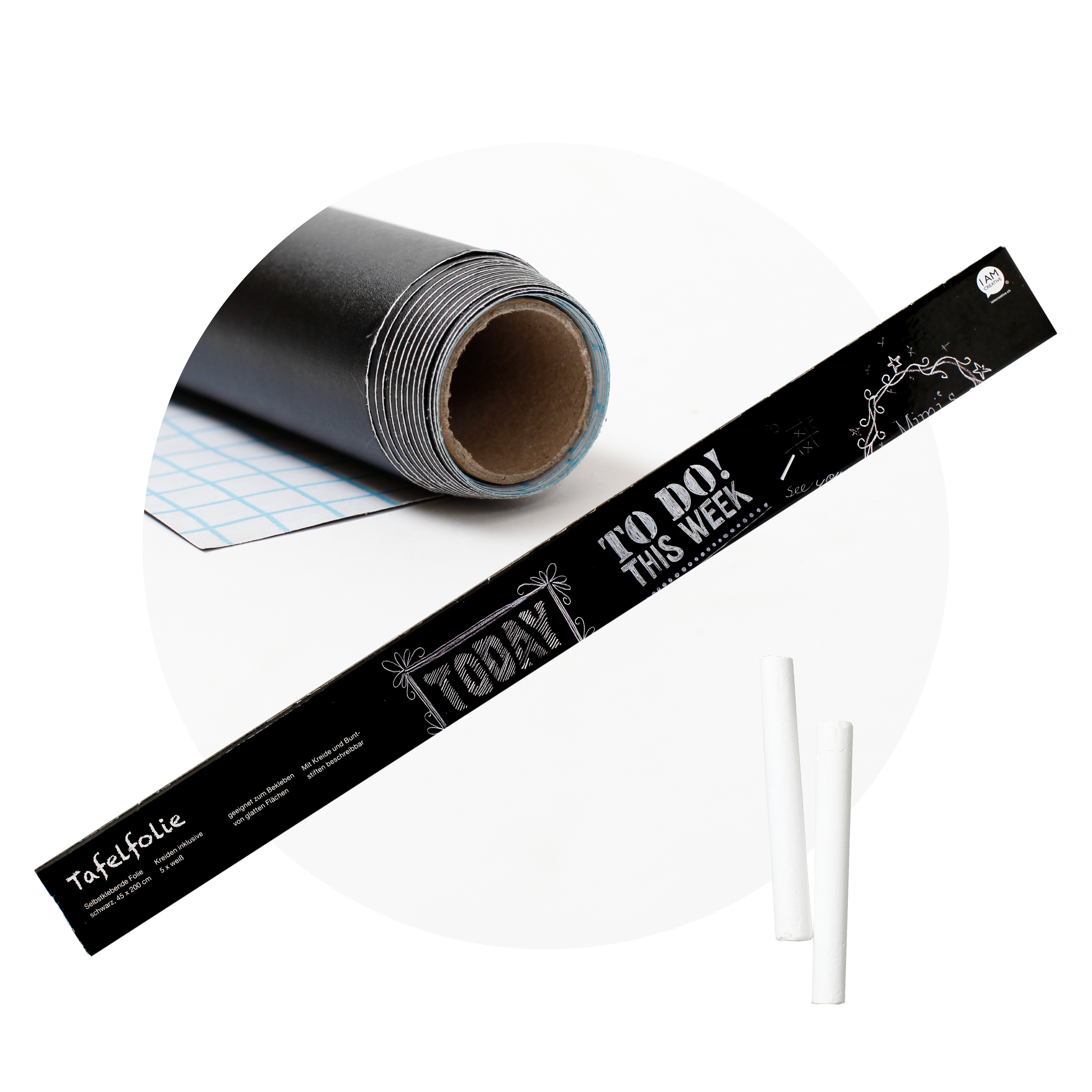 Selbstklebende Tafelfolie auf Rolle • schwarz • Masse: 0.45 x 2 m • inkl. 5 Kreiden