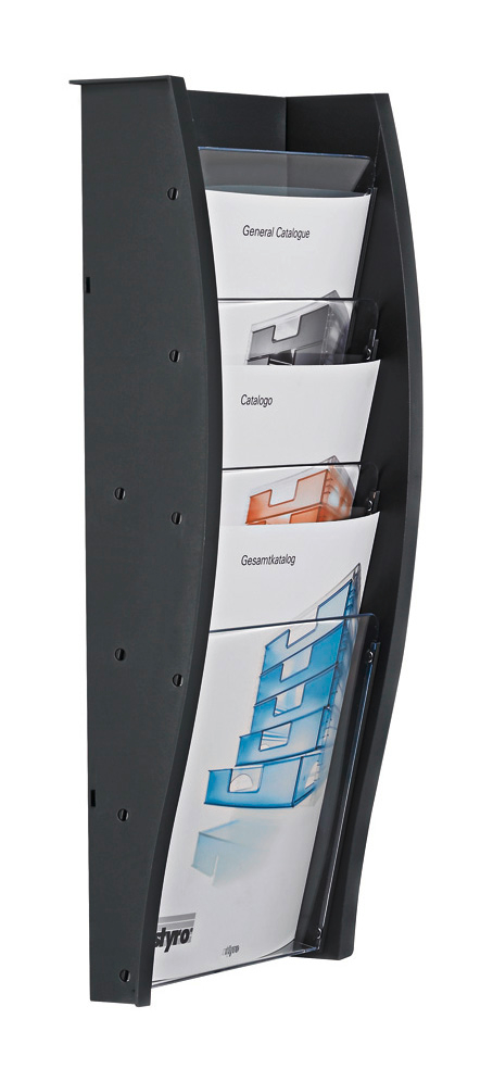 Neben dem eleganten Äusseren verfügt styrodisplay auch über handfeste Qualitäten. Dank der sehr soliden 3-Punkt-Befestigung hängt styrodisplay straff an der Wand und kann pro Fach bis 2 kg tragen. Der Korpus besteht aus unzerbrechlichem Polypropylen, die glasklaren Sichtfenster aus Polystyrol. Die abgerundeten Kanten zeigen sich nicht nur sehr benutzerfreundlich, sondern nehmen auch die sanft geschwungene Formensprache des Designs auf.