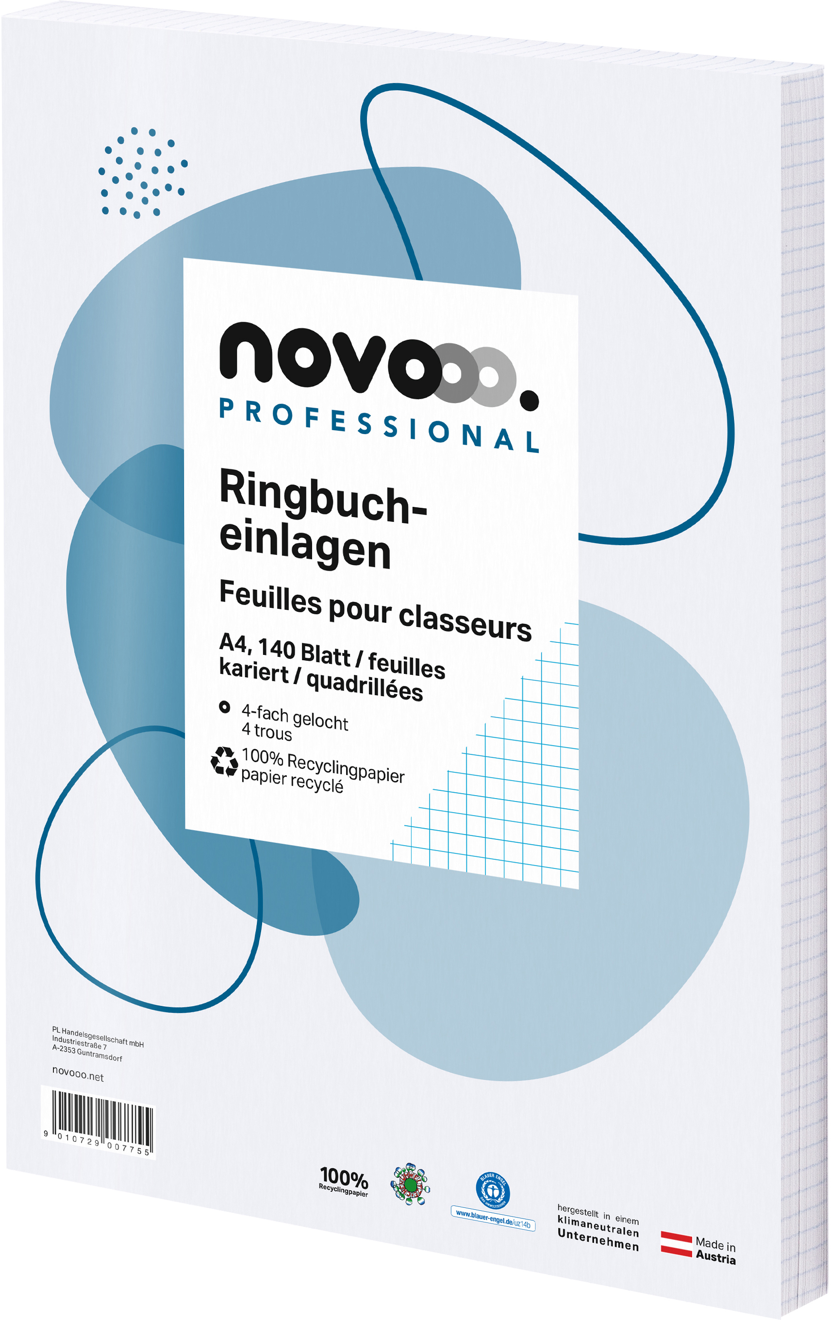 NOVOOO Ringbucheinlagen recycling A4 535027020 kariert 5mm, o/Rand 140 Blatt 724609-ITC