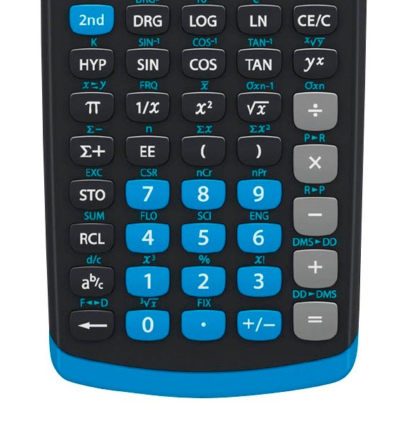 Solarbetriebener, wissenschaftlicher Basisrechner mit einzeiligem Display und grundlegenden mathematischen und naturwissenschaftlichen Funktionen