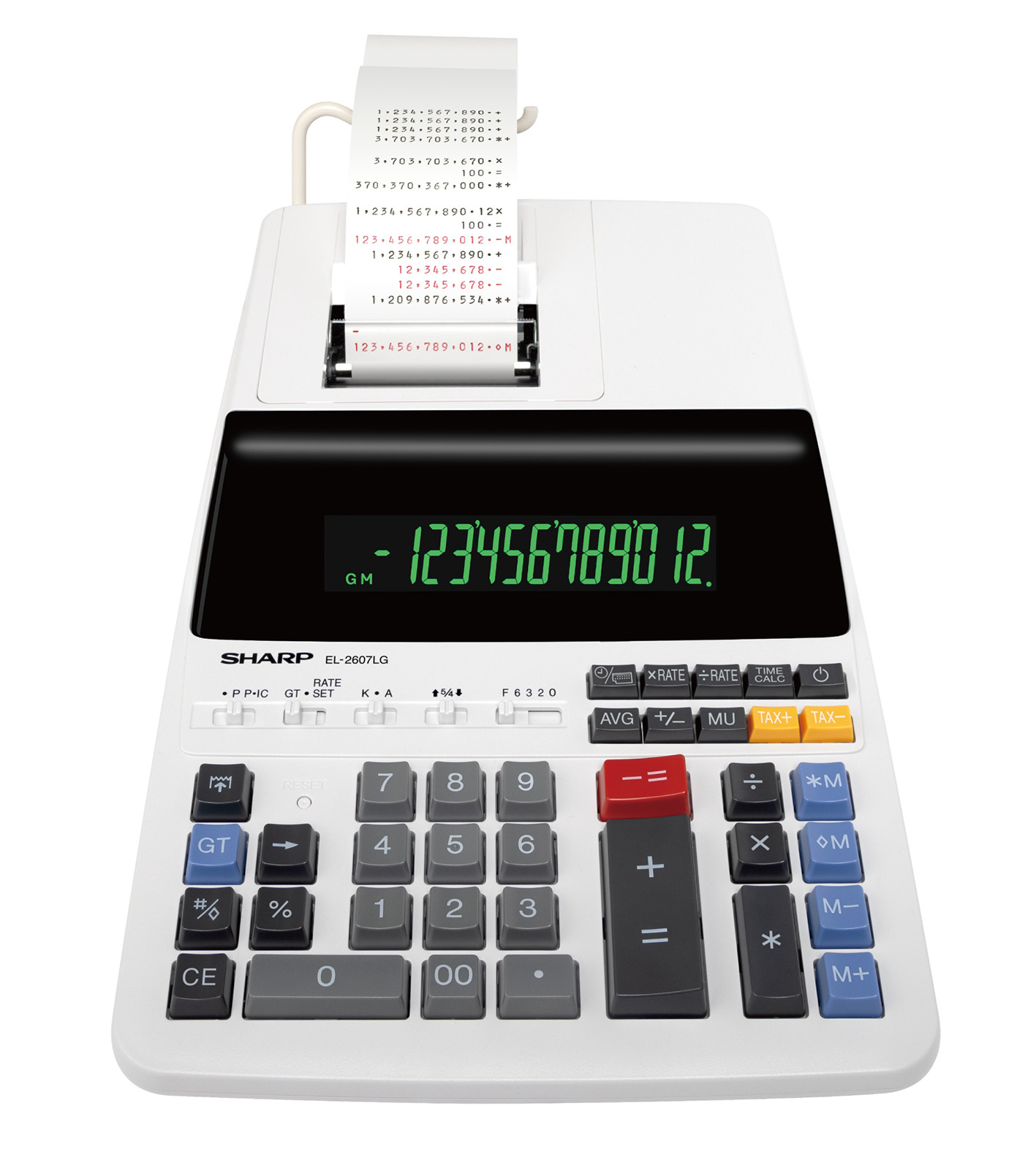 Der SHARP EL-2607LG Tischrechner druckend bietet mit der grossen 12-stelligen LCD-Anzeige und dem 4-Tasten-Speicher einen guten Überblick über jeden Rechenvorgang. Im 2-Farb-Druck (Schwarz/rot) drucken Sie Ihre Ergebnisse übersichtlich aus. Mit einer Druckgeschwindigkeit von 4,5 Zeilen/Sek. können Sie die Berechnungen in kurzer Zeit auf Papier drucken. Nachkommastellen sind für den in neutralem LichtGrau gehalteten EL-2607LG natürlich kein Problem.