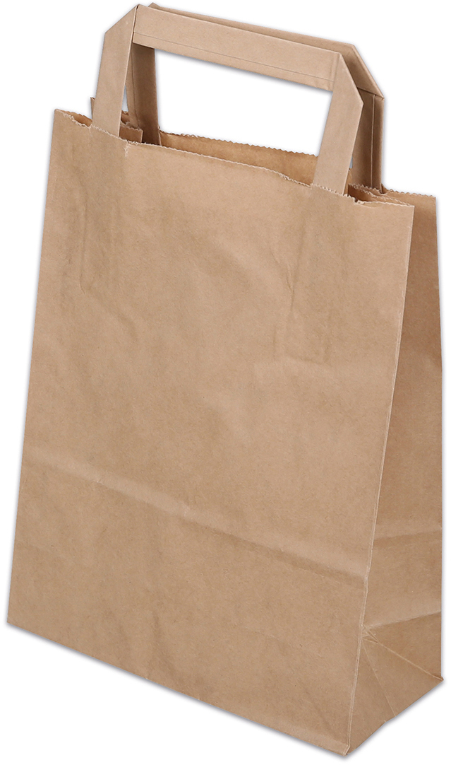 Papiertasche mit Flachhenkel aus braunem Kraftpapier mit einer Papierqualität von 80 g/m². Für verschiedene Anwendungen.
