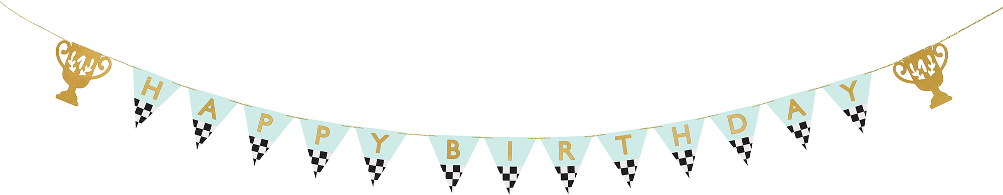 Der farbenfrohe Pokal-Banner mit der Aufschrift „Happy Birthday“ bringt sofort Feierlaune in jeden Raum und verwandelt die Partyfläche in eine tolle Geburtstagsszene. Das Banner besteht aus Papier im lebendigen Farbenmix, hat eine Höhe von etwa 13 cm und wird auf einer rund 3 m langen Schnur befestigt. Es kommt als Produkt zur Selbstmontage und bietet dadurch die Möglichkeit, den Partybereich ganz nach Wunsch zu gestalten.