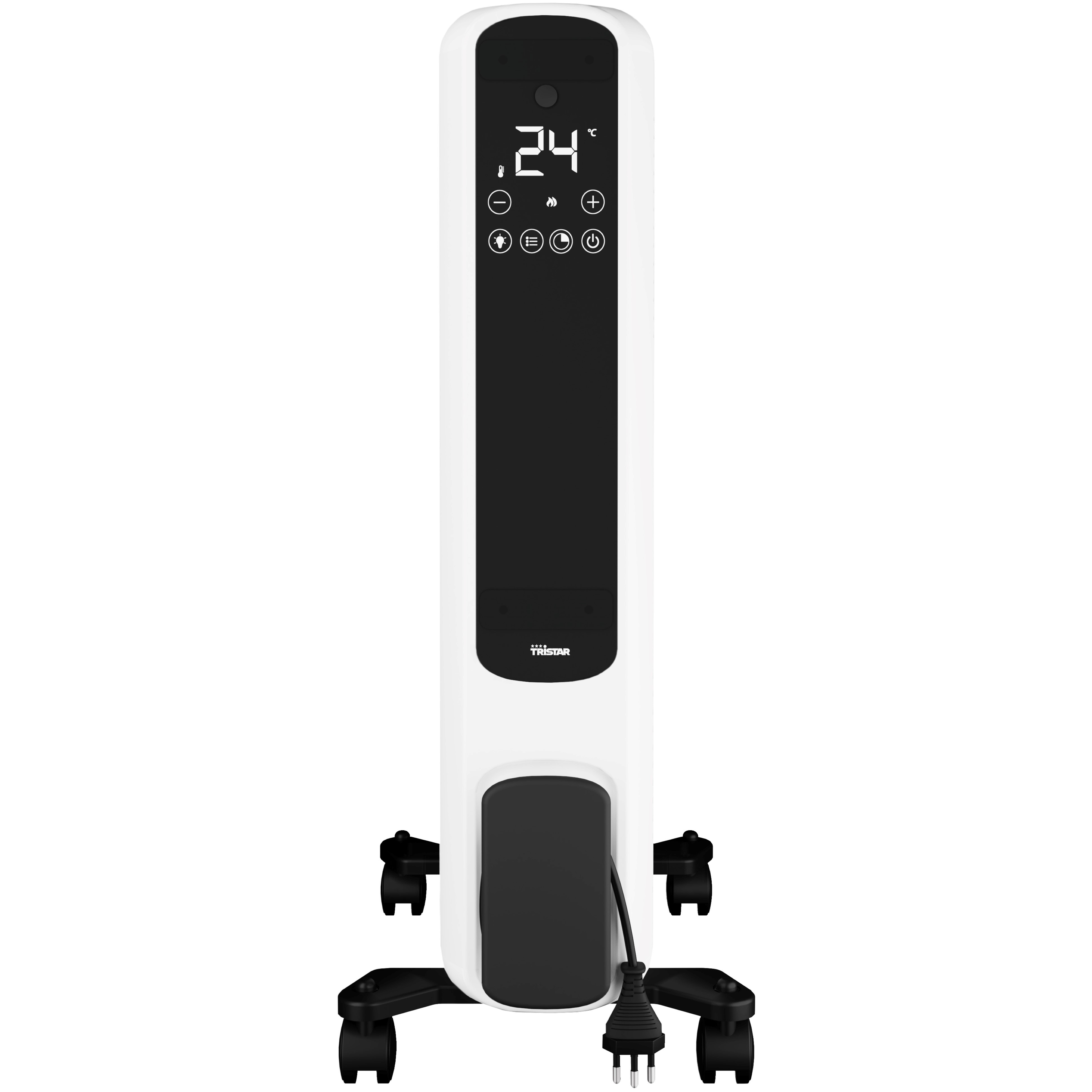 Ölgefüllter Radiator mit 7 Rippen, drei Heizstufen und einstellbarenThermostat. Bedienbar, manuell oder mit der Fernbedienung. Erkennung von offenem Fenster sowie Kipp- und Überhitzungsschutz. Geräuscharm und sorgt für nachhaltige, konstante Wärme.