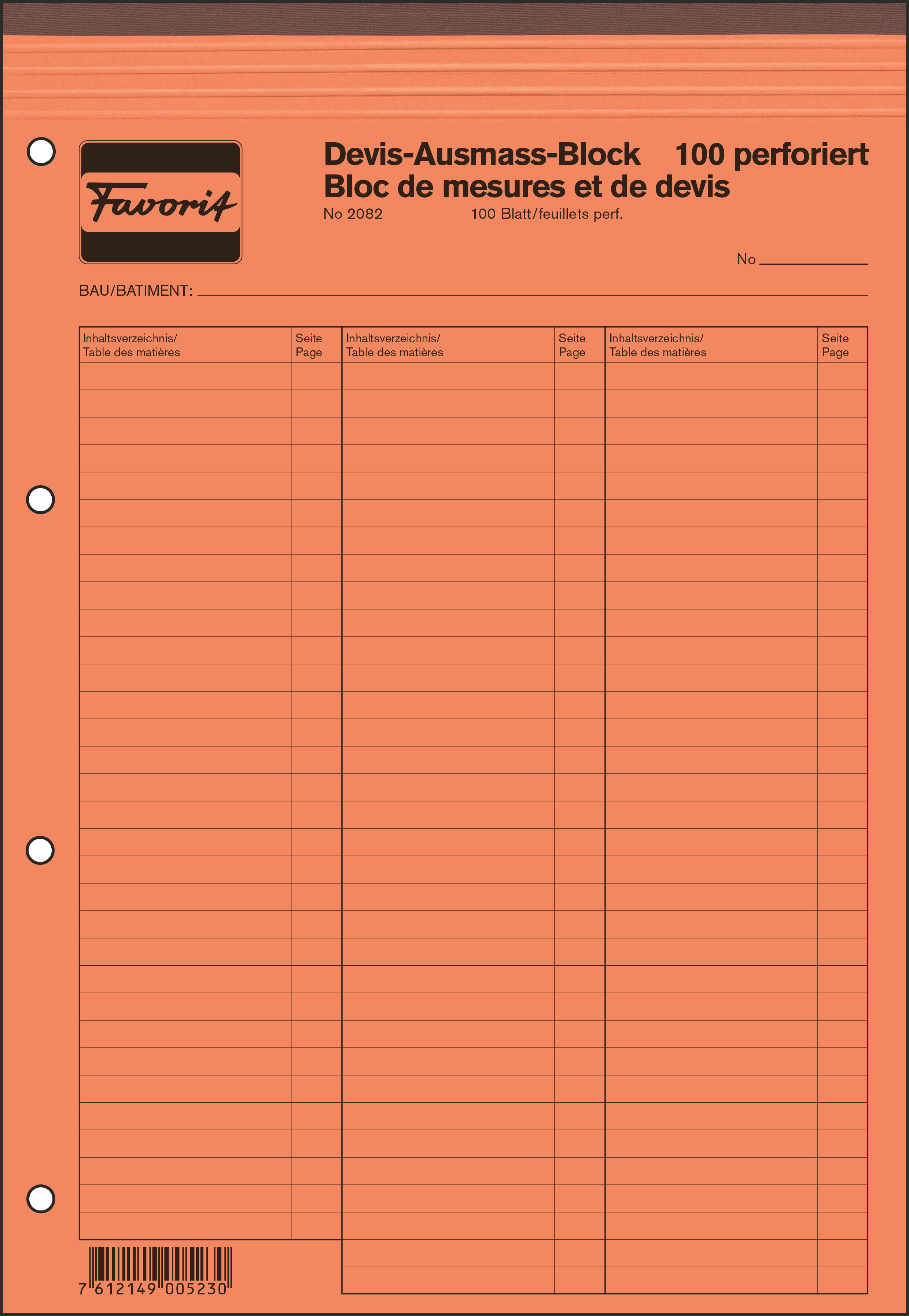 Der Devis-Ausmassblock von FAVORIT hilft Ihnen Ihre Arbeiten genau und übersichtlich zu notieren, um so immer den Überblick zu behalten!