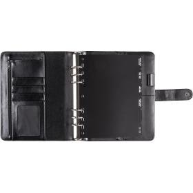 • Innen links: grosse Klemmtasche, Schlitztaschen für Visitenkarten etc., Einstecktasche für Taschenrechner im Scheckkartenformat