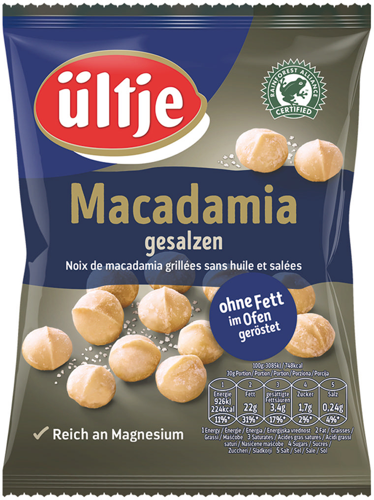 Die „Königin der Nüsse“ zergeht auf der Zunge. Die helle Farbe in Verbindung mit dem angenehm buttrigen Geschmack lässt sich nur bei den Macadamias finden. Sie werden ohne Fett geröstet und gesalzen und besitzen eine große Fangemeinde unter den Knabber-Gourmets.