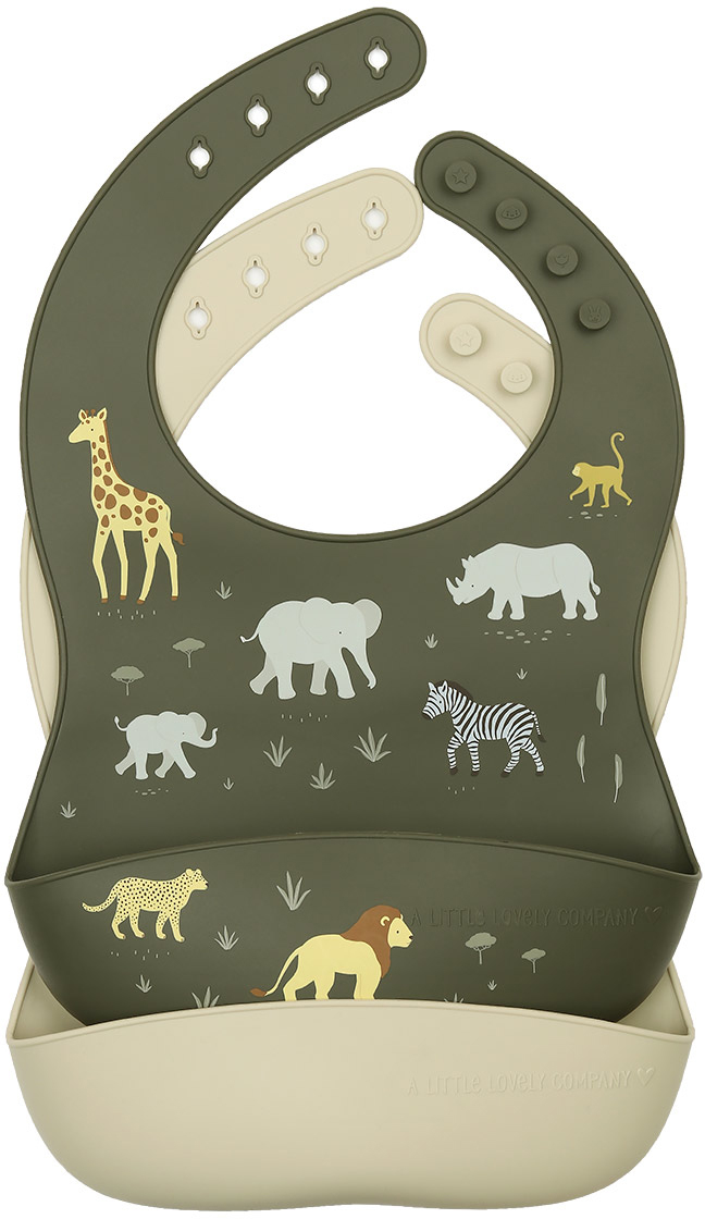Set mit zwei Silikonlätzchen - eines mit Schmetterlingenaufdruck und eines in passender Unifarbe. Die Lätzchen bestehen aus weichem, food-grade Silikon, sind wasser- und schmutzabweisend und haben eine breite Tasche auf der Vorderseite, die sich ideal zum Auffangen von Essen eignet. Der verstellbare Halsverschluss macht sie für Babys und Kleinkinder geeignet. Die Silikonlätzchen sind leicht zu reinigen und durch Aufrollen leicht zu verstauen.