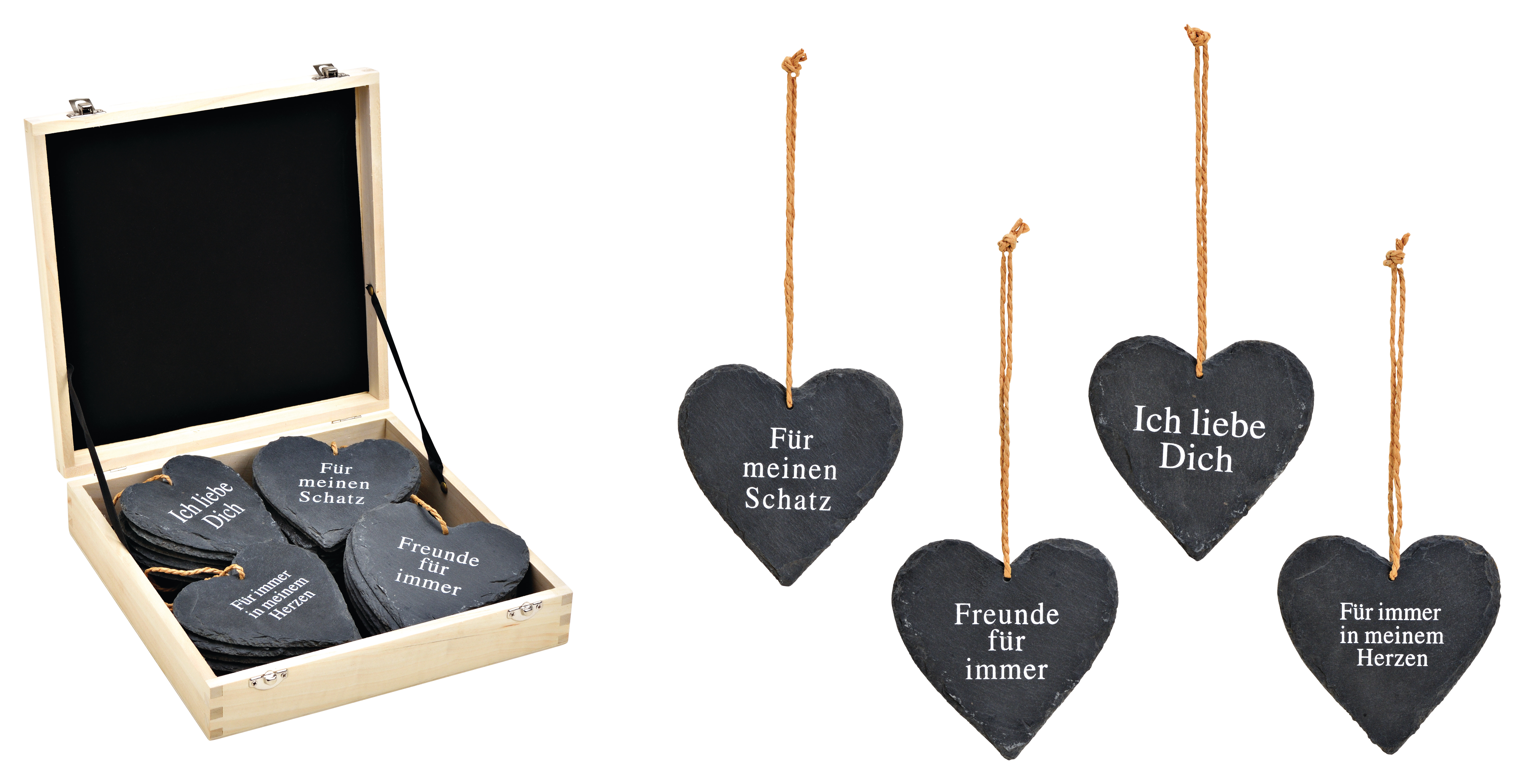 ROOST Herz aus Schiefer 10032873 mit Sprüchen, ass. 12x12cm