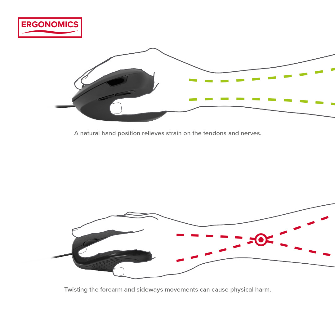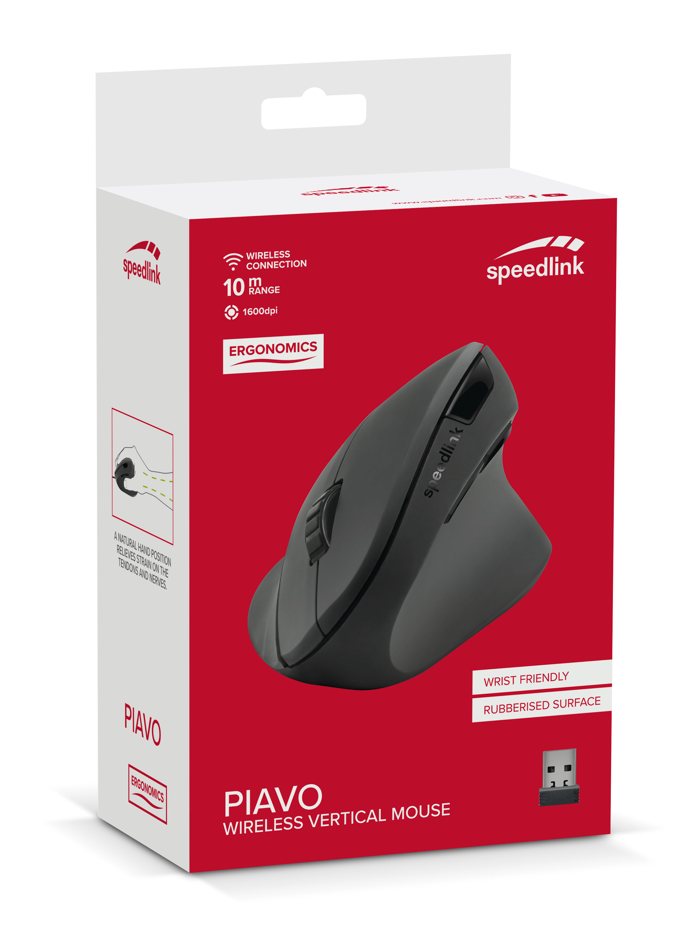 Experten raten zu ergonomisch optimierten Mäusen, da sie dauerhafte Belastungen durch repetitive Bewegungsabläufe am Arbeitsplatz vermeiden und Haltungsschäden in Schulter und Nacken vorbeugen können. Mit einer vertikalen Maus wie der PIAVO Vertical Mouse bleibt das Handgelenk in einer entspannten natürlichen Position und muss nicht gedreht werden, sodass die Sehnen geschont und Hand und Arm spürbar entlastet werden. Die Nutzung wird zu einer komfortablen und vor allem gesunden Erfahrung. Mit 5 Tasten, dpi-Schalter und bis zu 10 Metern Funkreichweite sind Sie zudem für alle Aufgaben am PC bestens ausgestattet.