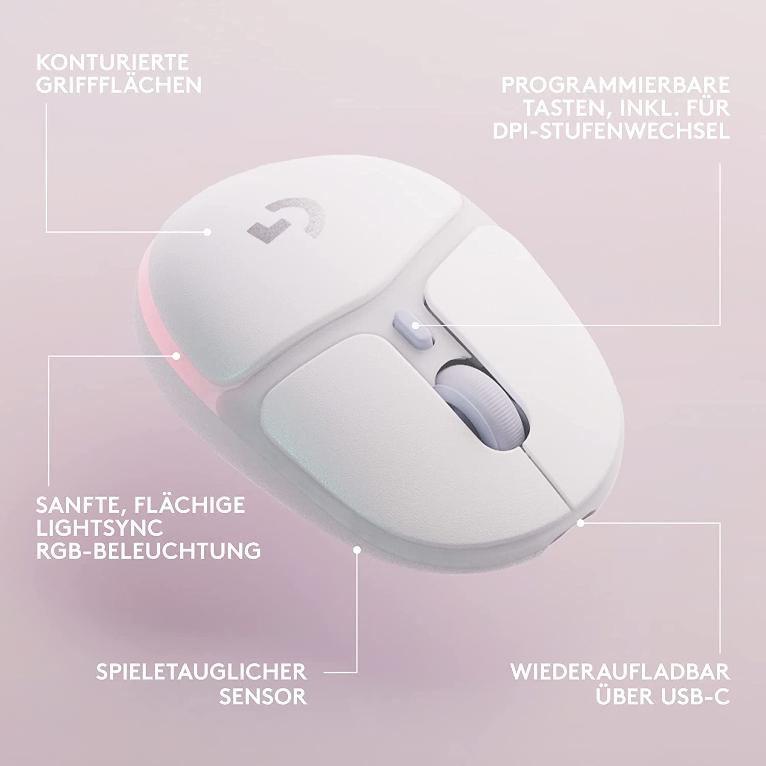 G705, die kabellose Gaming-Maus aus der Aurora Collection, bietet durch ihre geschwungene Form Komfort und Kontrolle und wir haben besonders darauf geachtet, sie auch für kleinere Hände angenehm zu gestalten. Mit kabellosem LIGHTSPEED für Gaming-Ansprüche, LIGHTSYNC RGB und fortschrittlicher Gaming-Technologie.