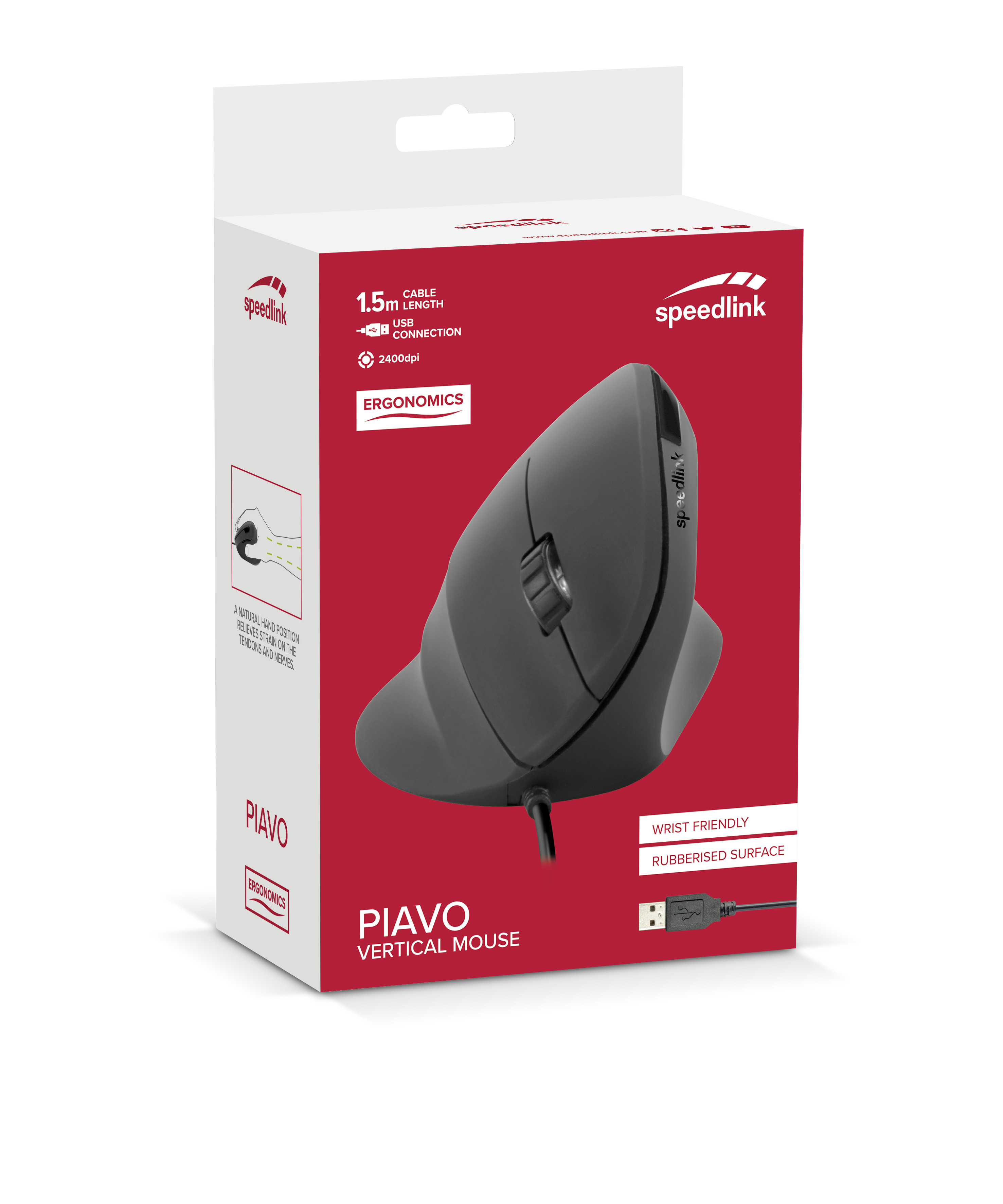 Experten raten zu ergonomisch optimierten Mäusen, da sie dauerhafte Belastungen durch repetitive Bewegungsabläufe am Arbeitsplatz vermeiden und Haltungsschäden in Schulter und Nacken vorbeugen können. Mit einer vertikalen Maus wie der PIAVO Vertical Mouse bleibt das Handgelenk in einer entspannten natürlichen Position und muss nicht gedreht werden, sodass die Sehnen geschont und Hand und Arm spürbar entlastet werden. Die Nutzung wird zu einer komfortablen und vor allem gesunden Erfahrung. Mit 5 Tasten und dpi-Schalter für eine anpassbare Sensorauflösung sind Sie zudem für alle Aufgaben am PC bestens ausgestattet.