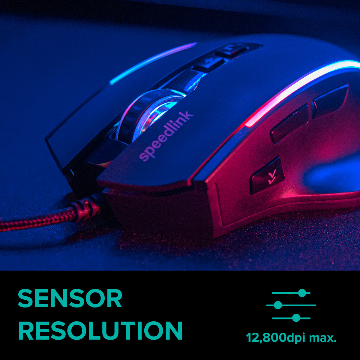SPEEDLINK DECUS NX Gaming Mouse RGB SL-680024-RRBK Wired, Rubber-Black 321208-ITC