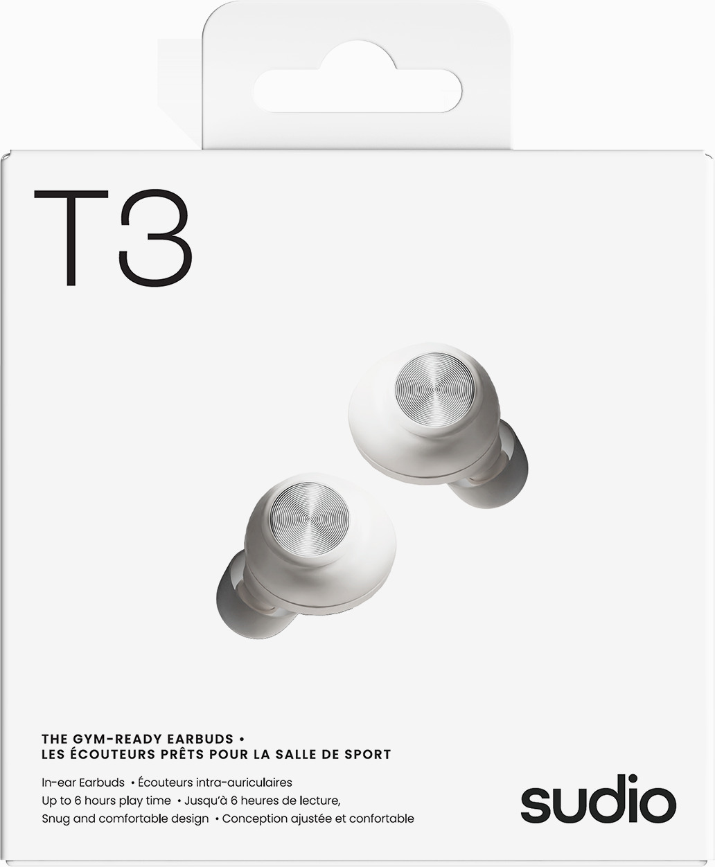 Die Sudio T3 Ohrhörer sind unkompliziert und zuverlässig. Sie sitzen bequem und sicher in deinen Ohren und kommen mit einem diskreten Ladeetui, das sich problemlos in deiner Tasche verstauen lässt, während du unterwegs bist. Mit bis zu 25 Stunden Spielzeit über das Etui, eingebauten Mikrofonen (2), USB-C-Aufladung, Bluetooth 5.4 und Schweiß- sowie Spritzwasserschutz bieten die T3 Ohrhörer ein komfortables, langlebiges und verlässliches Hörerlebnis.