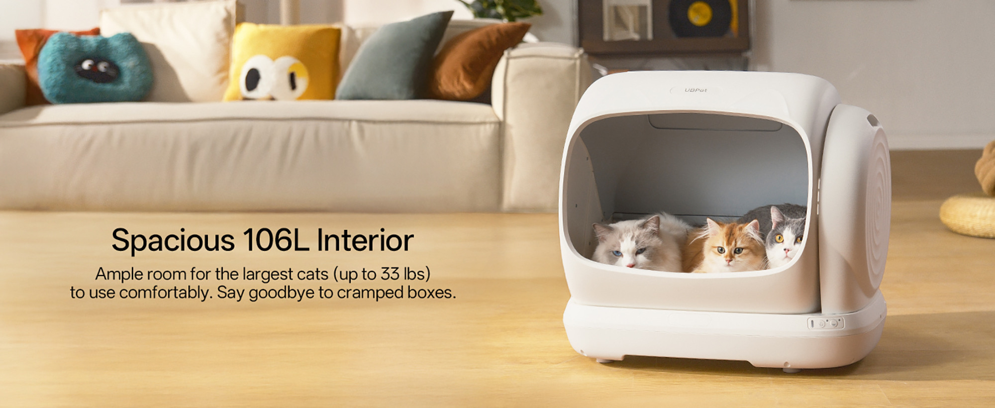 Die UCAT C41 Smart Katzentoilette bietet mit ihrem extra grossen XL-Design maximalen Komfort und Bewegungsfreiheit für Katzen jeder Grösse von 1 bis 13,5 kg. Der niedrige Einstieg und die breite Öffnung ermöglichen einen besonders einfachen Zugang und sind ideal für Kitten, Senioren, kurzbeinige oder übergewichtige Katzen sowie grosse Rassen. Die halb offene Bauweise reduziert Stress und sorgt durch bessere Sicht für ein sicheres, angenehmes Gefühl bei schüchternen Tieren. Ein intelligentes Multikatzen-Management erlaubt über die App die Überwachung von bis zu 30 Katzen inklusive Nutzungsdauer, Häufigkeit und Echtzeitwarnungen bei ungewöhnlichem Toilettenverhalten. Hochsensible Gewichtssensoren in Kombination mit einer mechanischen Einklemmsicherung gewährleisten höchste Sicherheit und stoppen den Betrieb sofort, wenn sich eine Katze im Inneren befindet. Die UCAT C41 arbeitet besonders leise mit unter 42 dB und eignet sich damit auch für den nächtlichen Betrieb. Ein duales Geruchskontrollsystem mit luftdichtem Abfallbehälter und austauschbarem Duftgel sorgt dauerhaft für Frische. Die robuste, kratzfeste Doppelboden-Konstruktion mit rutschfester Silikonoberfläche ist langlebig und leicht zu reinigen, während der herausnehmbare, wasserablaufende Behälter eine schnelle und hygienische Reinigung ermöglicht. Die Katzentoilette ist für alle klumpenden Katzenstreusorten mit einer Korngrösse unter 15 mm geeignet, verfügt über ein 7,8 Liter fassendes Abfallfach und kombiniert modernes Design, intelligente Technik und höchsten Komfort für Katze und Halter.