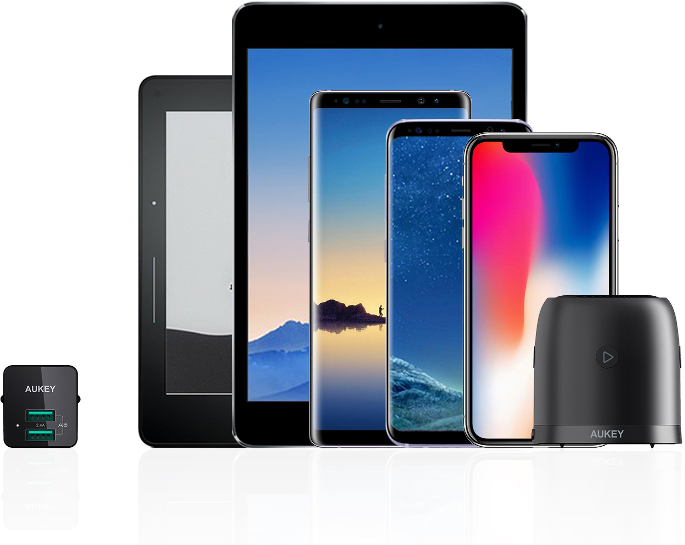 - Adaptives Laden von AiPower: Adaptives Laden aller 5-V-USB-Geräte (einschliesslich Android und Apple) mit bis zu 2,4 A (Schnellladung nicht unterstützt)