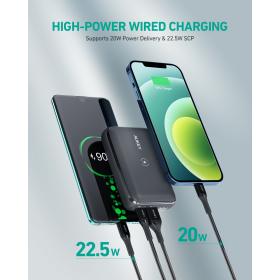 Kabelloses Aufladen: Laden Sie Ihre Qi-kompatiblen Geräte bequem mit bis zu 10 W ohne ein Kabel anzuschliessen (unterstützt 10W, 7,5W und 5W drahtlose Ausgangsleistung). Verwenden Sie Ihre Power Bank als Telefonständer: Der Standfuss ermöglicht eine stabile, freihändige Betrachtung des Telefons. Zwei Schnellladeausgänge: Der Power Delivery 3.0-Ausgang und der Quick Charge 3.0-Ausgang sorgen gemeinsam für eine optimierte Ladung Ihrer Geräte mit bis zu 20 W. Laden Sie das iPhone 11 Pro in nur 30 Minuten mit dem PD-Ausgang bis zu 50 % auf. 10000mAh Kapazität: Laden Sie Ihr iPhone 11 Pro 2,6-mal, Ihr iPad Air (2019) 0,9-mal oder Ihr Samsung Galaxy Note10+ 1,8-mal vollständig auf. Laden Sie die Powerbank in nur 3,5 Stunden mit einem 20W PD-Ladegerät auf. Praktische LED-Anzeigen: Die LED-Akkustandsanzeige zeigt den Akkustand und den Ladestatus auf einen Blick an. Eine spezielle Anzeige für das kabellose Laden sorgt für korrektes kabelloses Laden und zeigt an, wenn das kabellose Schnellladen aktiv ist.